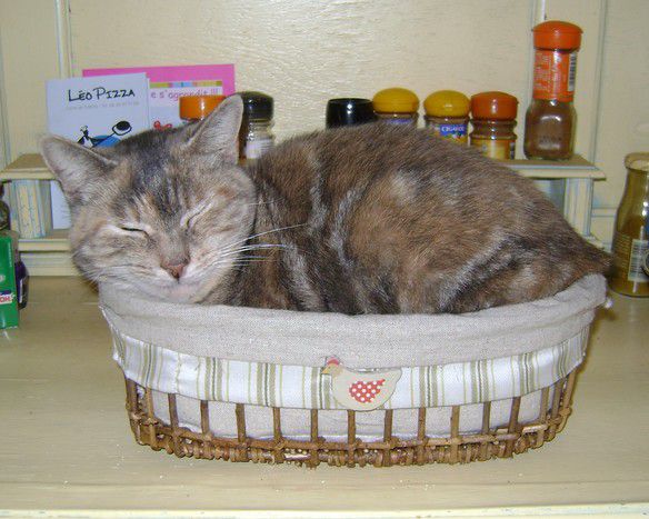 | Dire merci | Moi mon chat, il aime bien dormir dans des choses plutôt.. étroite, va savoir pourquoi![]() |