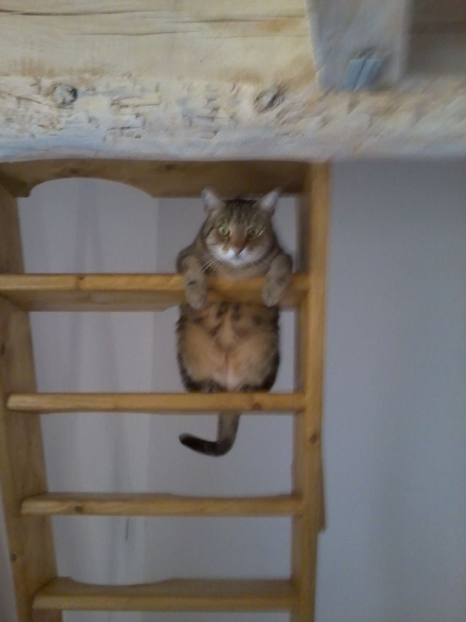 | Dire merci | C'est un tancarville, le truc pour faire sécher le linge... et je retrouve réculièrement Mika qui fait hamac emmaillotté au fond d'un drap, pendouillant au bas du tancartruc |