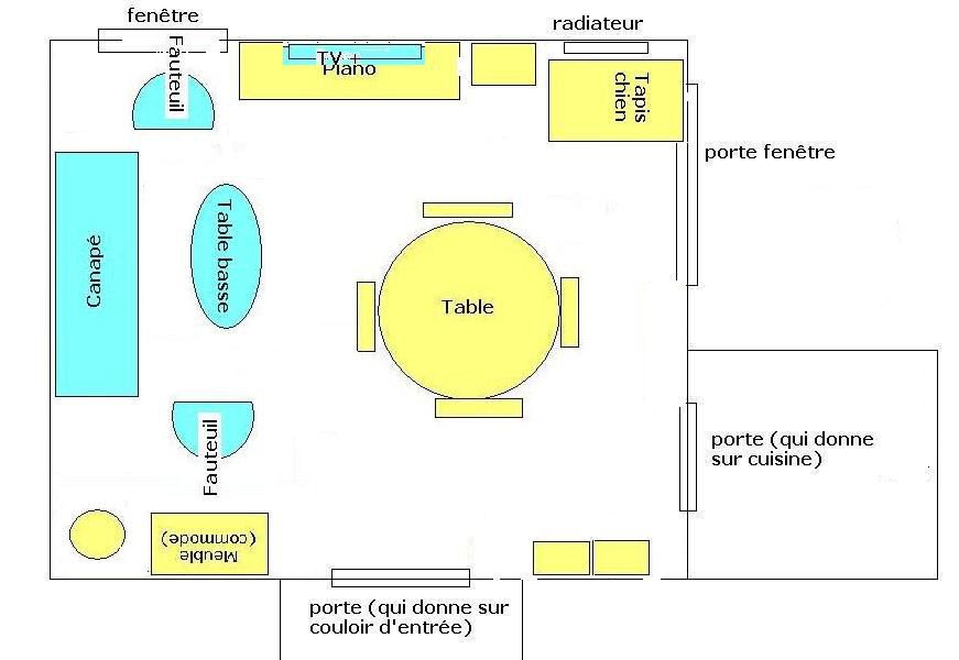 | Dire merci | Moi, j'aurais tendance à le voir comme ça :![]() C'est à dire que la Table de salle à manger, dans mon esprit, elle doit être à proximité de la cuisine. Le meuble TV, à priori, c'est à roulettes, ce qui permet d'incliner la TV soit vers le coin salon pour regarder un film si on est sur le canapé, soit vers la table si on mange en regardant les infos... Le piano, pas contre le mur des voisins La toutoune, vers le radiateur, puisqu'elle aime ça, et ça n'empêche pas d'ouvrir la porte fenêtre... |