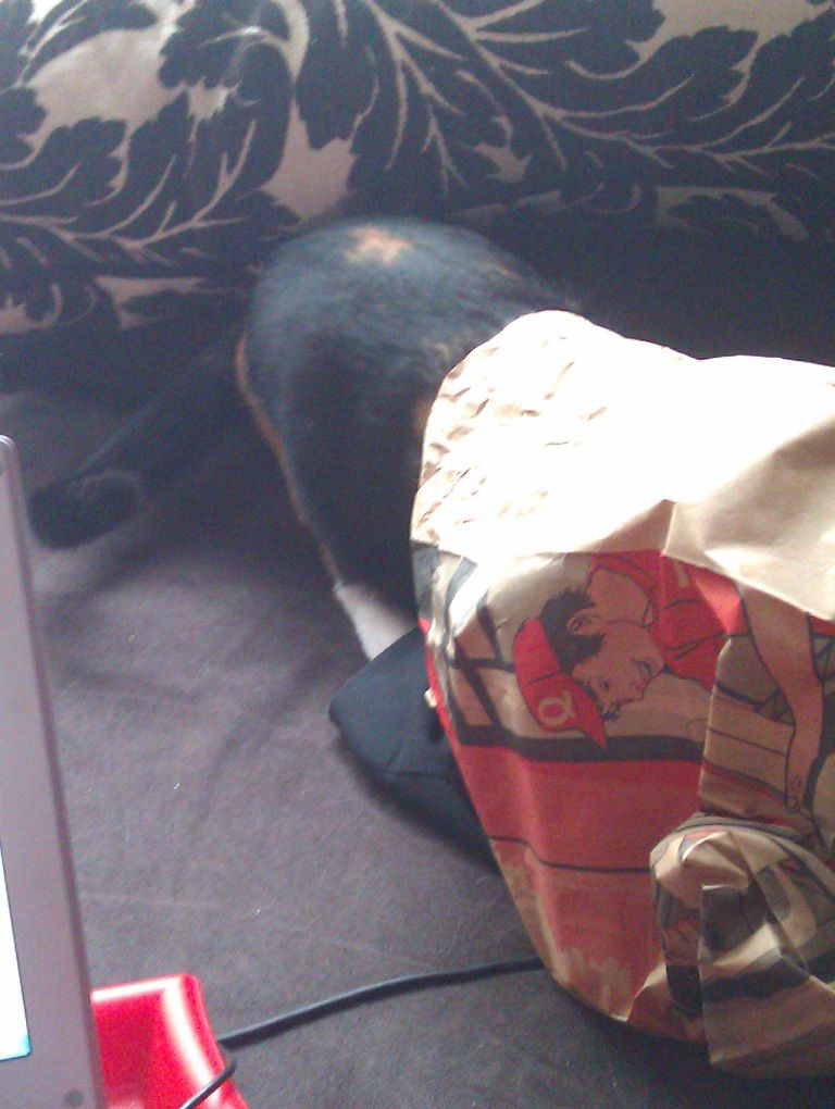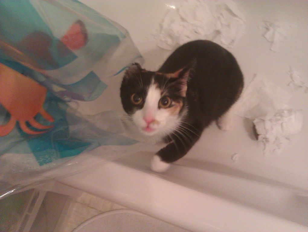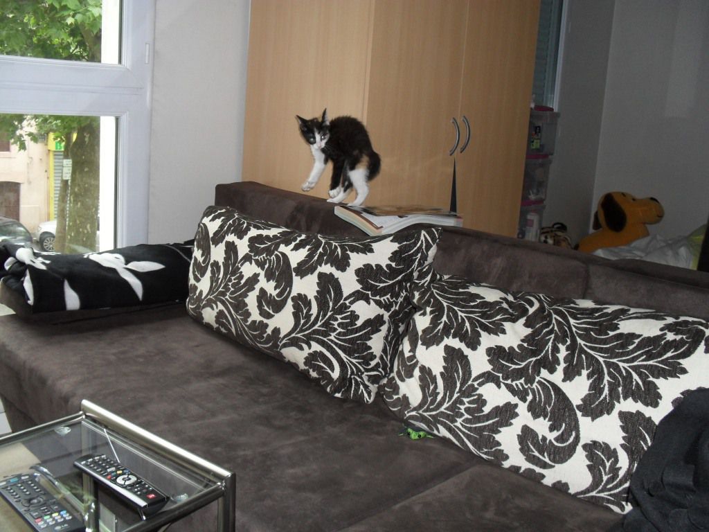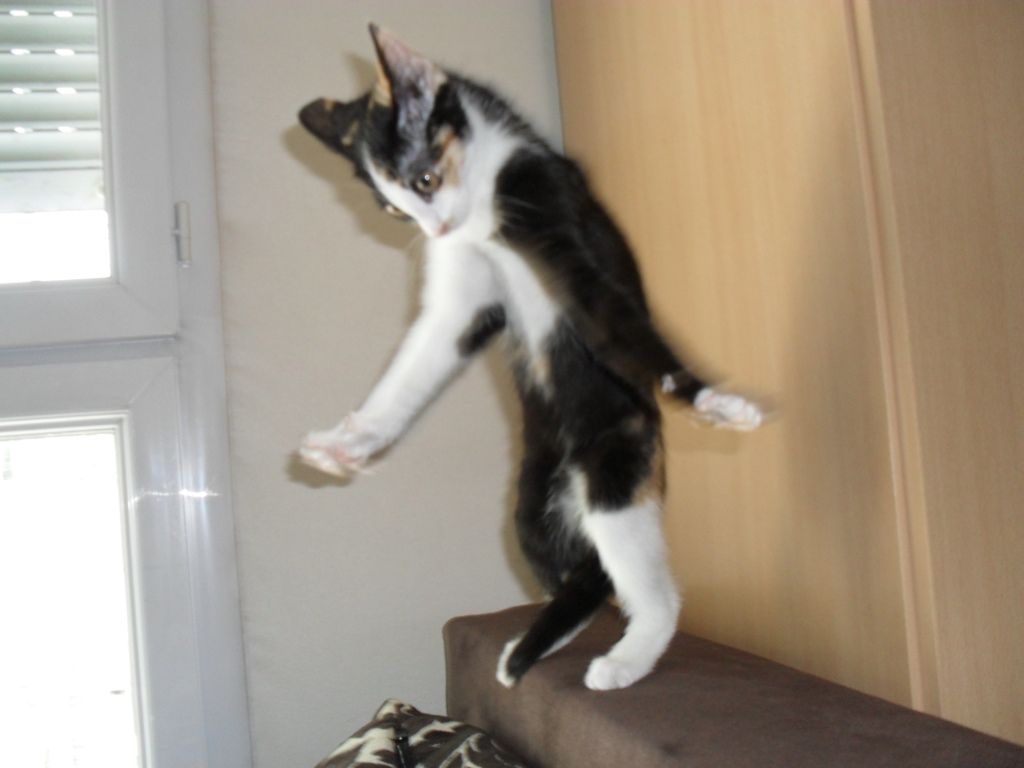| Dire merci | Oui le sac plasitque en guise de cap c'est son grand truc! Elle passe son temps cacher dans les sacs platiques et quand elle rentre dans la poignée elle se tient toute grande sur ses pates, marche fièrement et fait des bonds quand elle saute! "Spyder Chaton, Spyder Chaton, elle peut grimper au plafond!" ![]() Message édité le 15/12/11 à 22:35 |