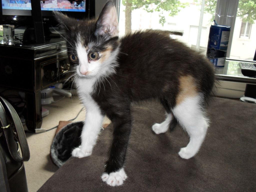 | Dire merci | ... mais moi je l'aime c'est pas de ma faute! Parce que je sais que vous en réviez tous, je vais vous présenter l'histoire de Chaton, femelle tricolore et morue de son état! Voici le ptit bout de cul que je suis allée chercher le Samedi 08 Mai 2010! ![]() ![]() |