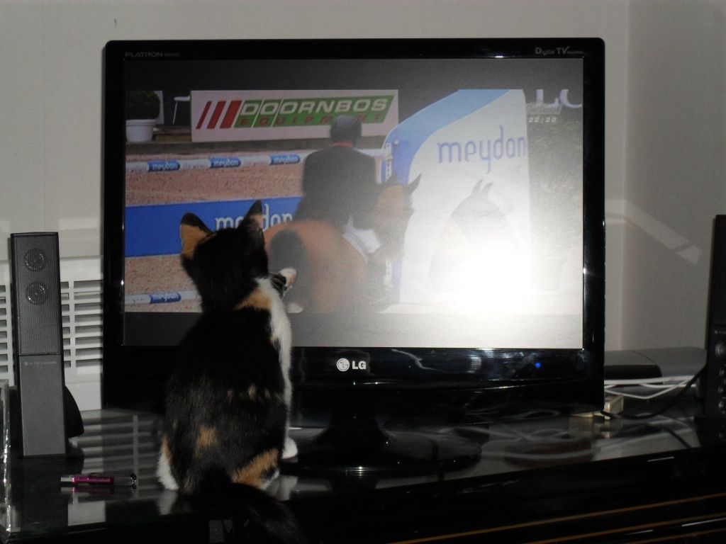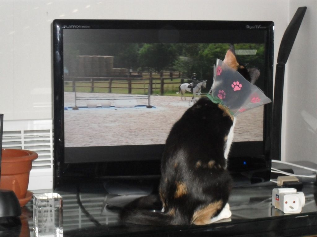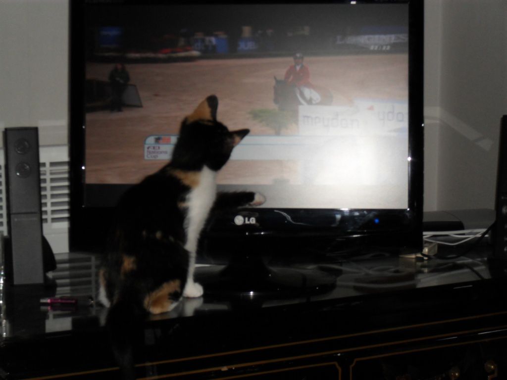 | Dire merci | Elle aime aussi regarder la tv mais attention UNIQUEMENT Equidia! C'est véridique, les autres chaines elle s'en fout mais quand il y a Equidi a elle rapplique! ![]() ![]() ![]() ![]() |