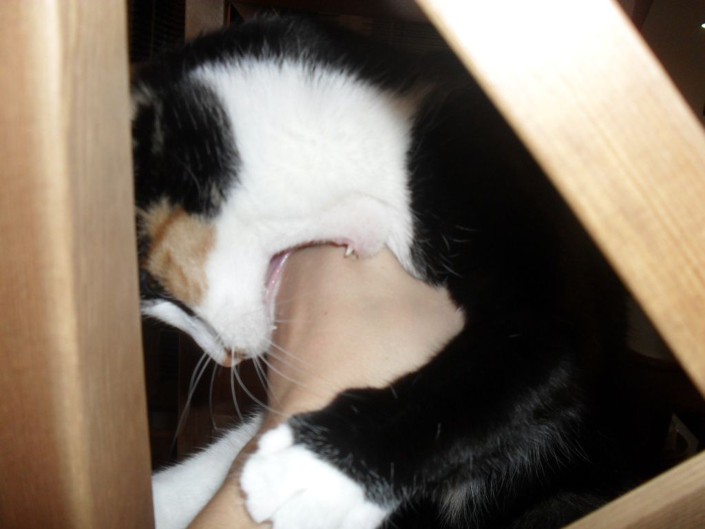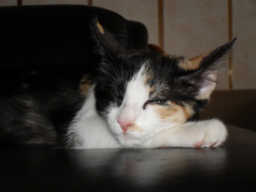 | Dire merci | j'ai une ecaille et blanche, aussi tarée que la tienne! Mais neanmoins très choue ta minette |