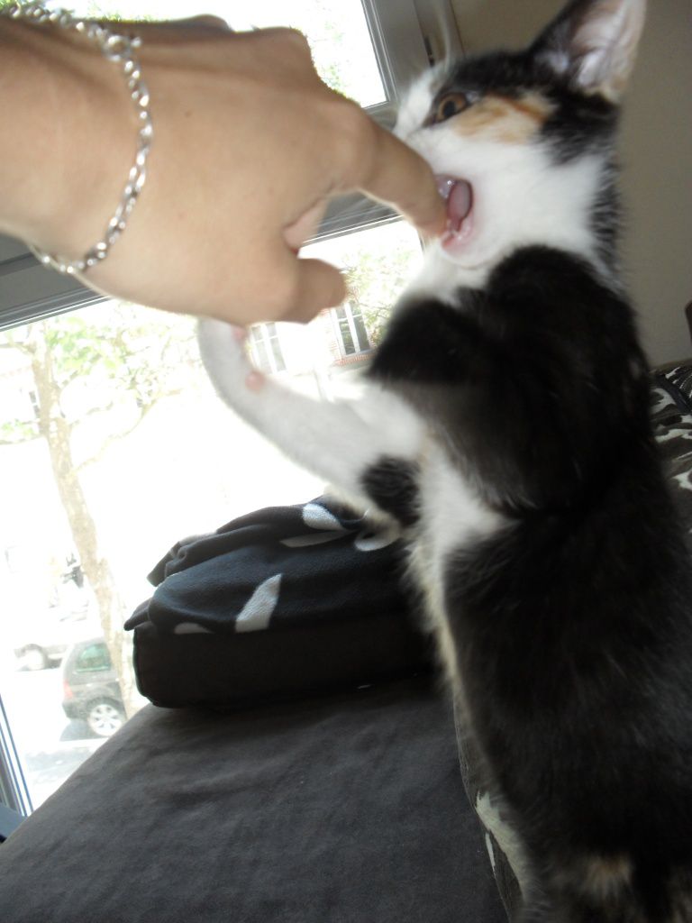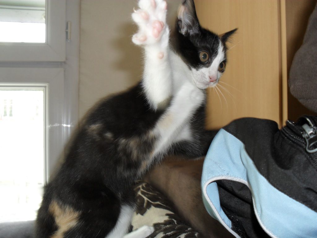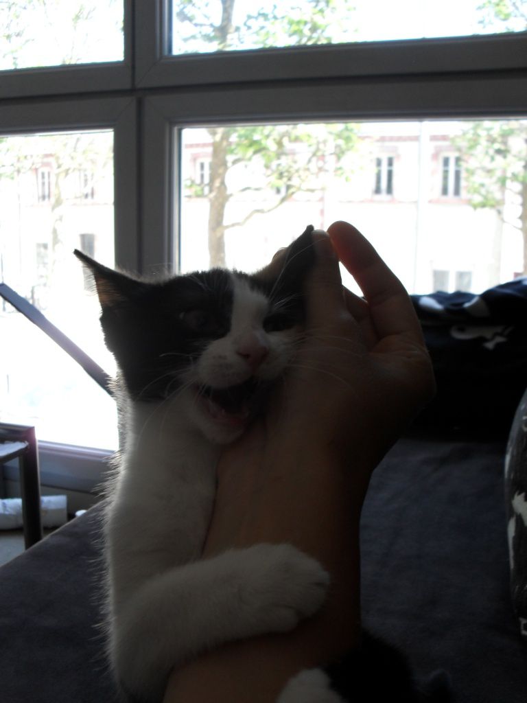 | Dire merci | Je suis donc allée chercher Chaton après avoir vu une annonce sur le bon coin. Je ne cherchais pas de chat (jamais été trop attiré par eux) mais quand j'ai vu ces 2 photos j'ai craqué! Direction la Vendée à 1h de chez moi pour la récupérer. Sa mère n'a eu qu'un chaton dans sa portée qu'elle a arrété d'allaiter à 4 semaines. Moi je l'ai récupéré 6 donc assez jeune mais bon... Je pense que ca explique en grande partie son caractère de grosse morue! On fait la bagarre??? ![]() ![]() ![]() C'est quoi ce truc horrible????? Ahhhhhhh c'est tes pieds, ah bah d'accord va falloir que je m'habitue! ![]() |