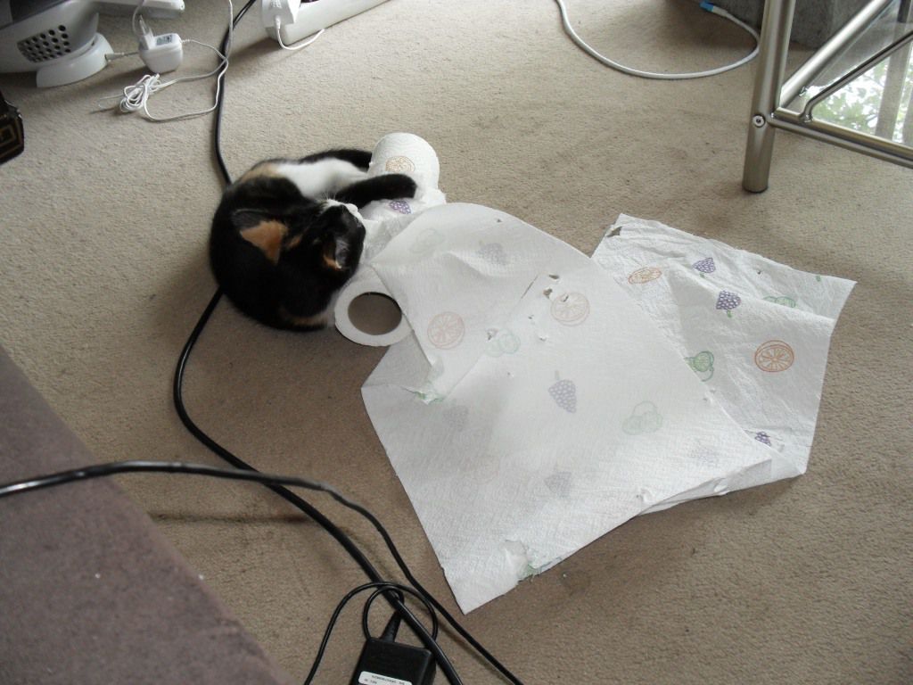 | Dire merci | hahahaha j'adore !! c'est pas vrai, quelle folle !! mdr les photos où elle est débout pattes avant grandes ouvertes sont juste énormissimes ! hahaha trop chou mon chat fait les mêmes bagarres avec les rouleaux de PQ |