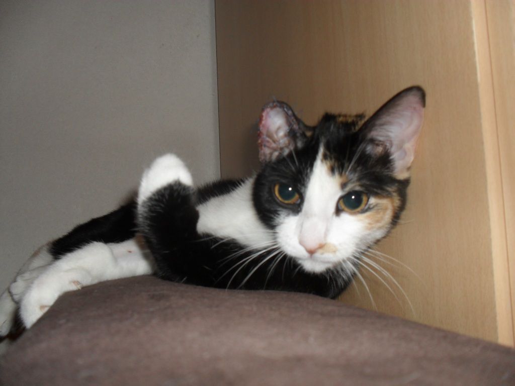 | Dire merci | Elle a eu une tumeur bénine étant petite (à 4mois). On voit l'espèce de petite verrue marron en haut de son oreille droite ![]() Du coup le véto a préféré lui faire une ablation du bout de l'oreille pour retirer un maximum de racine. Il m'a dit que vu son age elle risquait d'etre sugette toute sa vie aux tumeurs et pire en vieillissant. Aujourd'hui je stress tous les jours au moindre "symptome" dès qu'elle n'est pas dans son état habituel je m'inquiète. ![]() |