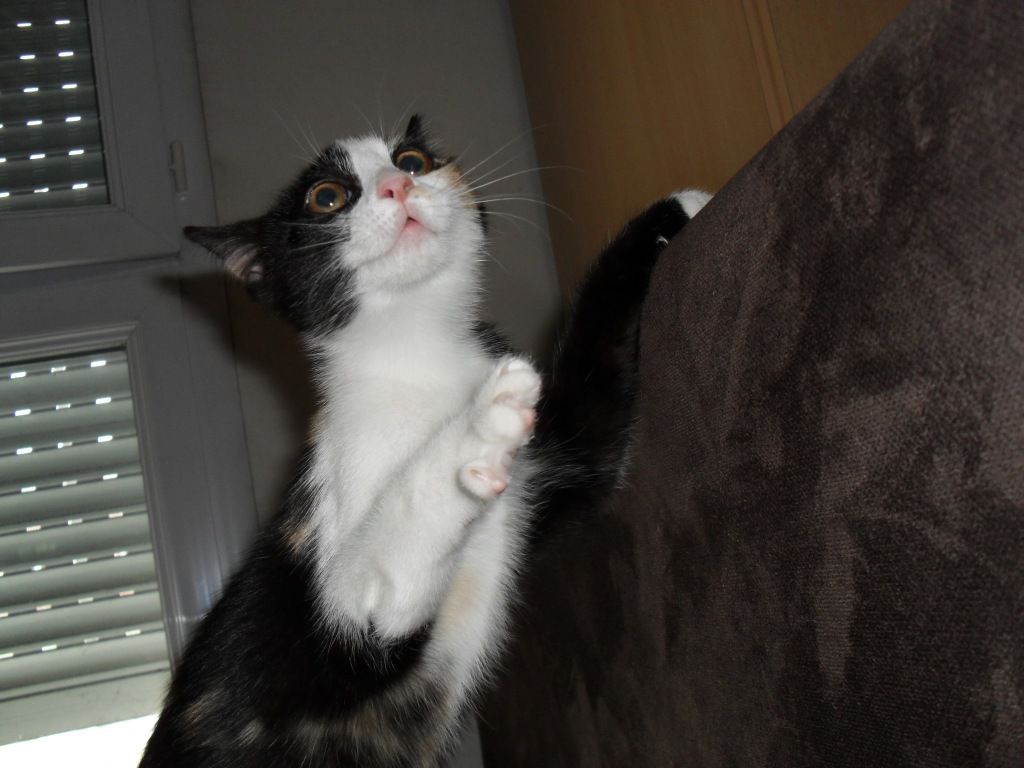 | Dire merci | Complètement timbrée! Vous avez bien résumé sa personnalité je trouve!!! Lubis elle fait le crabe 15 fois par jour minimum. Elle est tout le temps entrain de jouer. Comparé à d'autres chats adulte elle ne dort pas tant que ca. Elle fait sa nuit avec nous mais la journée elle la passe surtout à essayer de me choper les pieds, à se cacher, à courir, à faire le crabe ou se mettre dans des positions pas croyable pour que maman vienne jouer... emilie100787 je trouve que la vidéo la représente assez bien, excepté qu'elle se fiche royalement de la bouf. A part son bout de brioche le matin, la fin des glaces/yaourts et les frites elle réclame pas. Elle a ses croquettes à volonté et mange relativement peu. Tant mieux elle garde la ligne comme ca! |