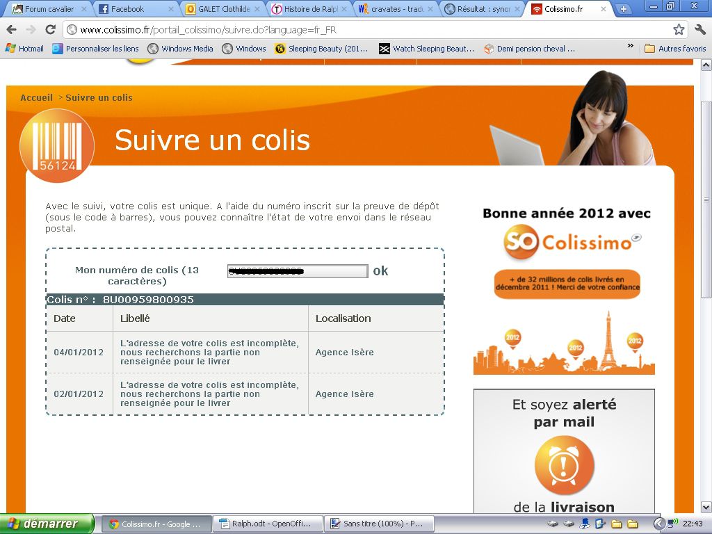 | Dire merci | Décidément je ne sais pas ce qui ne va pas avec mon colis ![]() L'aurai-je un jour ? Genre il est où le problème ? La dame qui l'a envoyé m'a certifié l'avoir envoyé à mon nom à mon adresse. C'est quand même pas dur de lire mon nom sur la porte et la boite aux lettres ![]() En plus j'étais là aujourd'hui jusqu'à 14h30 ![]() ![]() |