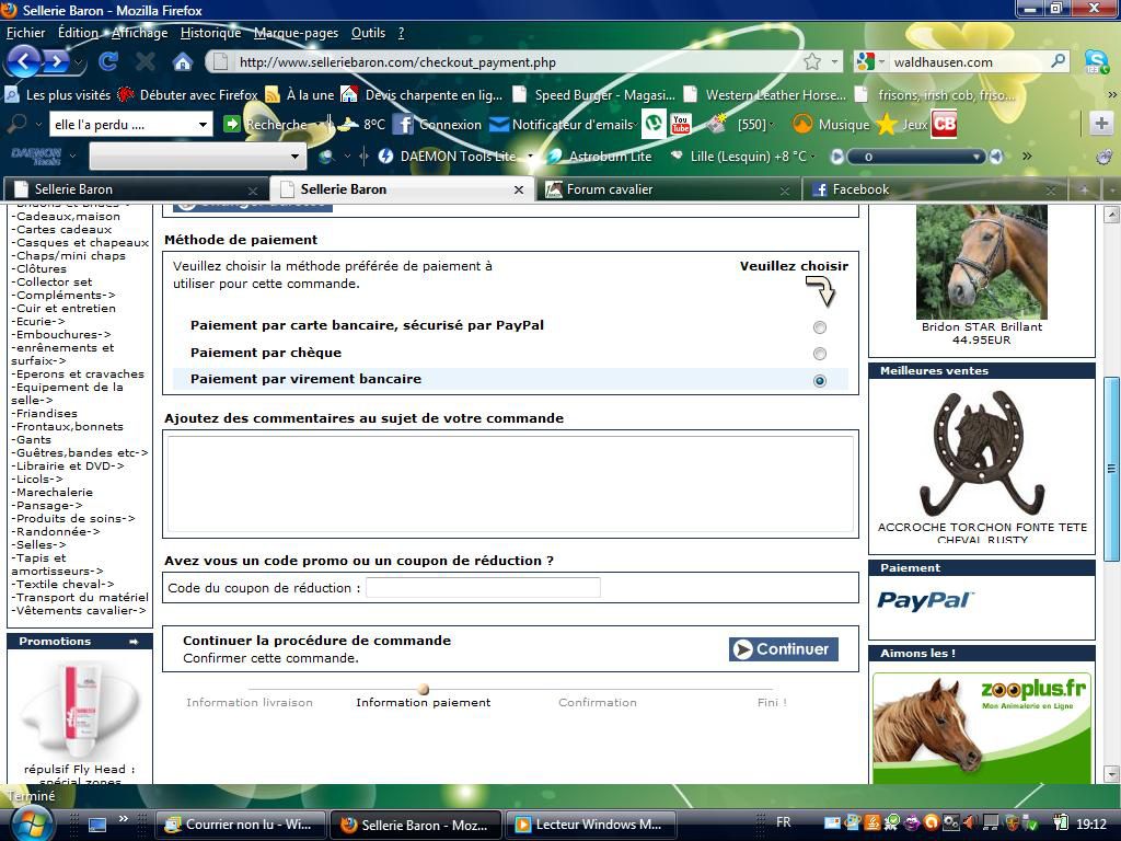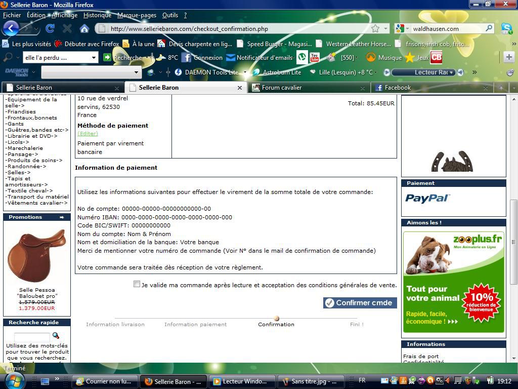 Déconnecté | oui j'ai mis paiement chèque paypal et virement donc je mets rien dans virement? et sinon le paiement est garantie fiable? Comment savoir si le paiement est bien passé et que c'est pas un règlement en bois? Message édité le 08/01/12 à 19:13 |