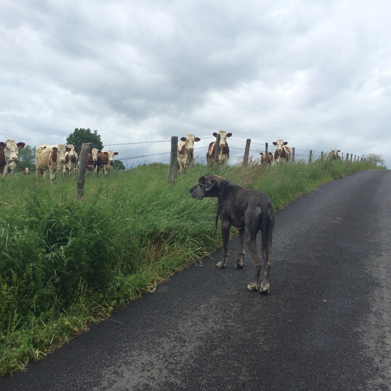 | Dire merci | sannom non mais c'est génial ce que tu as fait, je suis bluffée car pas sûre que moi j'aurai eu le courage de me jeter à l'eau par de pareil température ... BRAVO !!!mystic2 bravo d'avoir tenu le choc malgré la douleur, c'est ballot qu'en tout va bien à l'entrainement et que ça arrive le jour J. Ce matin, juste un petit tour de 5km mais je suis tellement contente et fière de moi (un peu d'auto satisfaction !!!) car j'ai réussi à faire la fameuse portion que je fais d'habitude en descente, et là je sais pas, je me sentais bien, et je l'ai faite à l'envers... Bon tranquillement mais j'ai bouclé ses 5 km en 32 min. Ce sera donc mon petit tour pour les jours où j'ai pas beaucoup de temps, mais que j'ai envi de bien transpirer. ![]() bien sûr en photo on se rend pas compte évidement mais je vous assure que ça grimpe! et pour mystic2 ![]() Toutes les vaches ont toujours une fascination pour mon chien! |