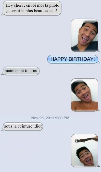 | Dire merci | j'en ai d'autres (dès que les beaux parents sont loin........loiiiiiinnnnnn |