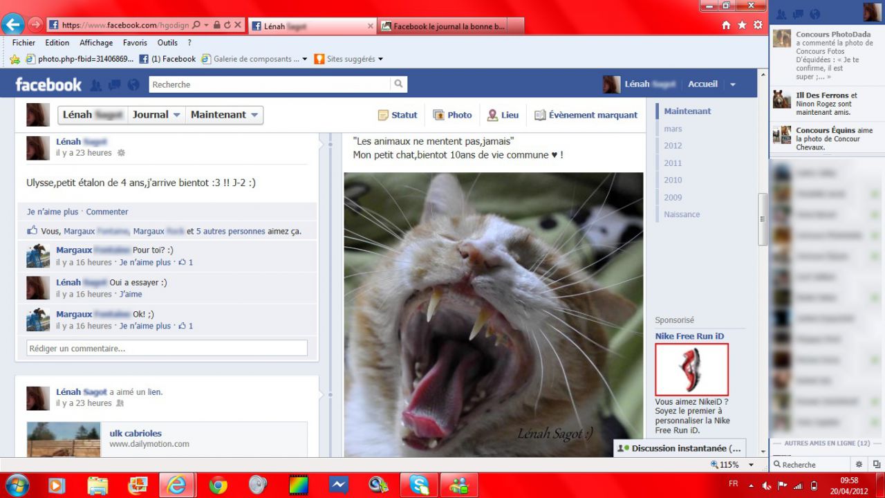 | Dire merci | Y'avais quelqu'un qui avait demandé a voir comme c'était,vu que j'ai rien a faire j'vais montrer le journal a ceux qui l'ont pas, pas encore Perso moi j'aime beaucoup ce journal j'me sens un peu seule On arrive sur le profil,avec la belle photo de couverture ![]() On descend un peu sur le mur,bha c'est un mur quoi ![]() ![]() Et la page des albums qui a aussi changé D'ailleurs la photo de couverture de Fleurbaix,bha c'est l'étalon que je choisirais pour ma grosse dans quelques années ![]() |