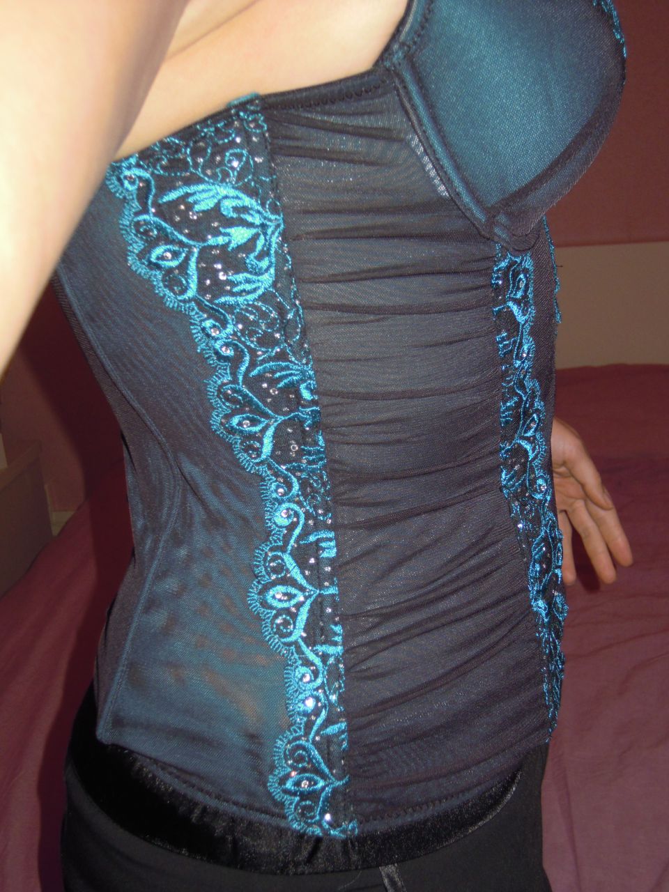 | Dire merci | naala: j'ai le même bustier que toi : le bleu et noir ! J'en ai aussi un noir et violet foncé. Par contre moi je les ai pris pour les porter dans l'intimité mais mon copain m'avait fait la remarque qu'en soirée ça serait très joli et sexy. perso, je trouvais ça trop provoquant mais plus j'y pense plus je me dit que ça peut etre sympa. Pour les mettre je galère un peu ! J'agrafe tout devant et je tourne mais c'est limite quand même ! |