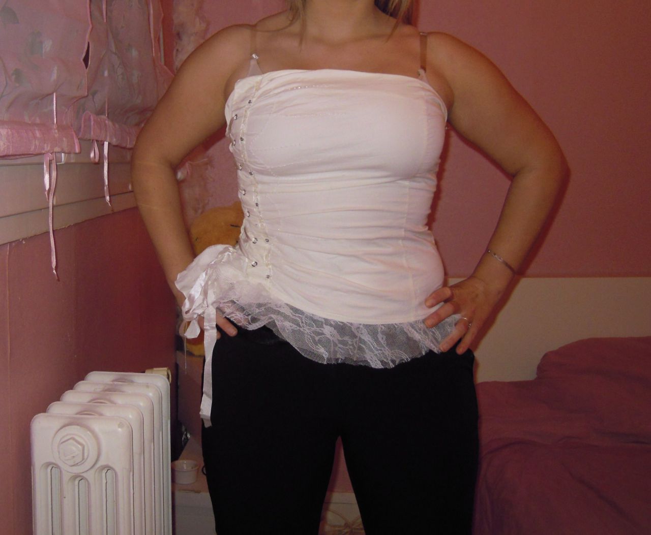 | Dire merci | je vous ai fait qq photos. pour info je fais un 90D et une taille 40. je n'avais que 2 bustiers sous la main: -un noir a armature: soutient tres bien les seins et dessine la taille. parfait pour les poitrines genereuses. il est tres decollete et donc plotot provocant. -un blanc en tissus tt simple: tres tres fluide, impossible pour moi de le porter sans soutif (sinon il glisse!).il faut tjrs que je le replace. par contre une amie a le mm, elle a un petit 90B et elle c'est nickel sans soutif! pas decolleté. |