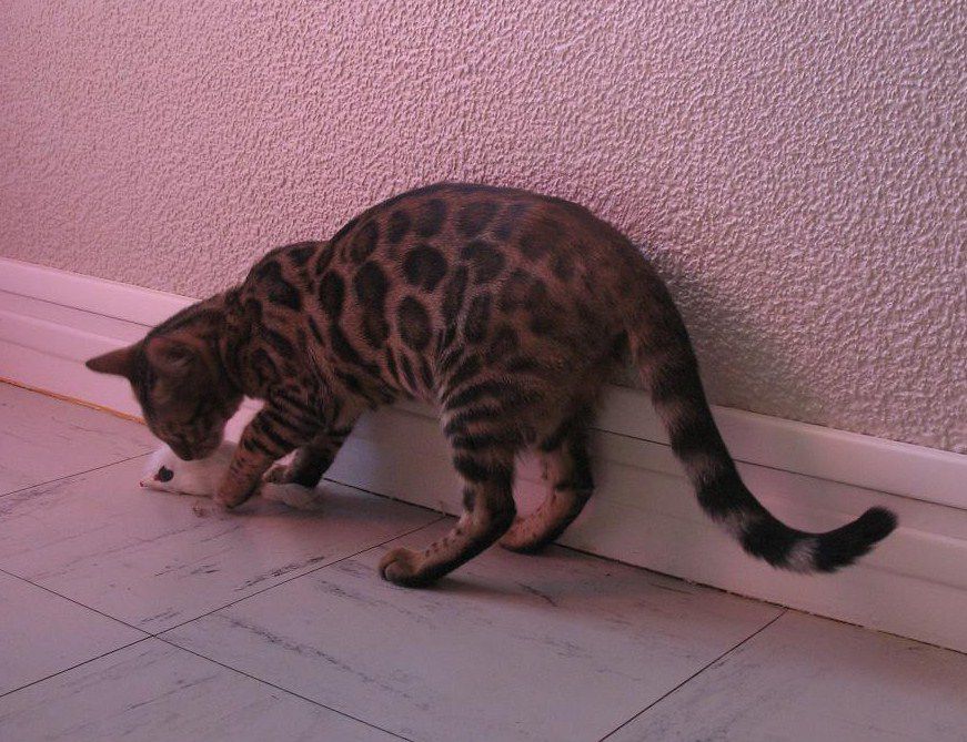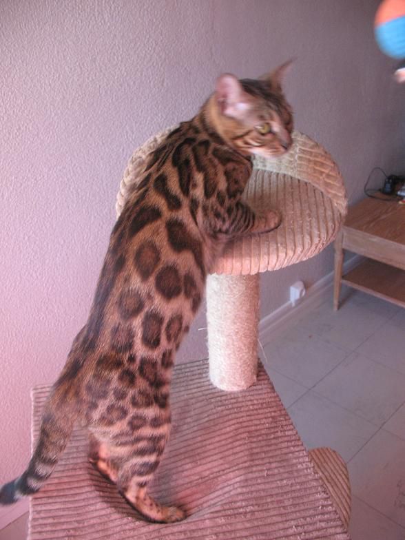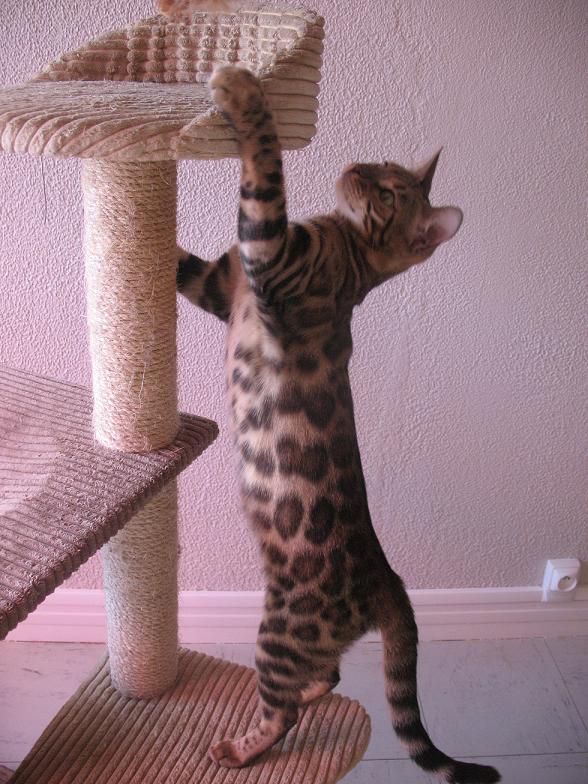 | Dire merci | le F1 ce sont les tt premiers croisements avec les VRAIS bengalis sauvages. les bengals que l'on trouve sur le marche sont des F10 minimum, donc parfaitement sociabilises. dans certains pays les F1 sont mm interdits car tres sauvages. je pense qu'il faut une agregations pour en detenir. donc pas d'inquietude, nos chatons sont tres sympa, mais effectivement l'inctinct de predateur reste present. ils gueullent egalement bcp |