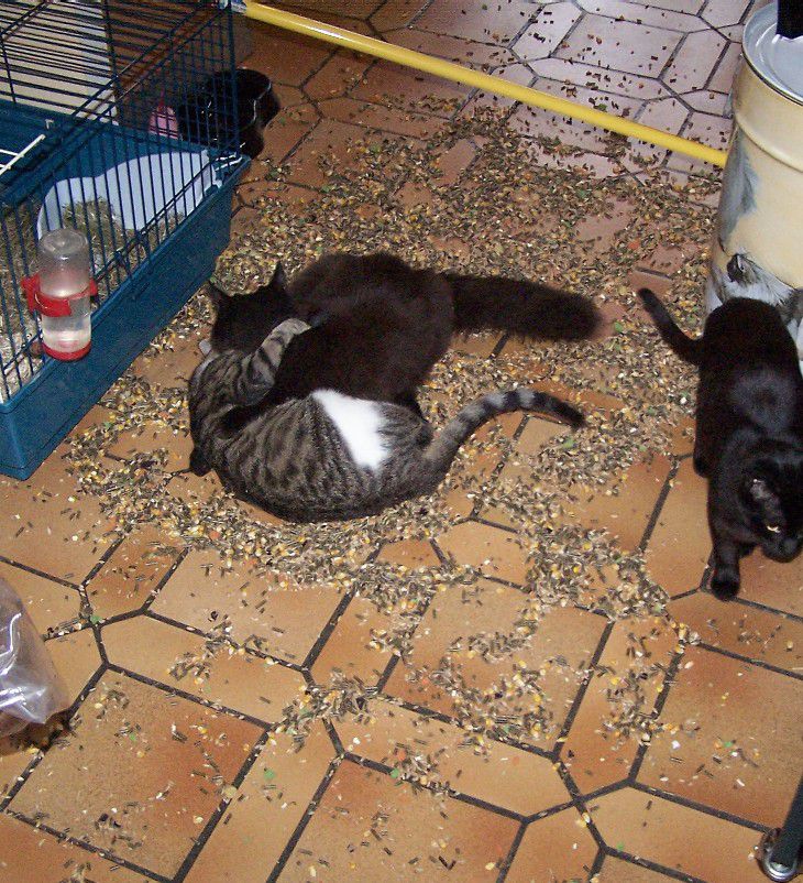 | Dire merci | Ah ca les chats... Je ne dirais qu'une seule chose, ne JAMAIS laisser des chats avec un sac de graines à proximité... (en fait ne JAMAIS laisser des chats seuls XD) ![]() |