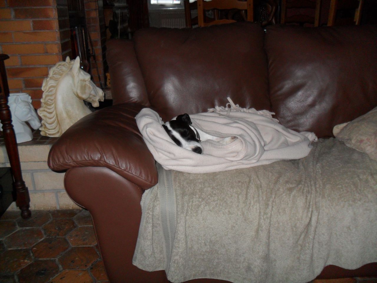 | Dire merci | ma chienne tente de monter sur le canapé car mes parents lui ont donné la super idée d'y aller avec moi c'est niet et elle le sait, elle tente un peu le soir de m'amadouer avec son regard de chienne battue, mais quand c'est non c'est non d'ailleurs si elle est sur le canapé avec mes parents, il suffit que je rentre dans la pièce et elle descend aussi tot, si elle met du temps à descendre et tente le coup du chien battu, j'ai juste à dire "descends" et zou elle reprend sa place à nos pieds quand on s'en va, on bloque le canapé avec la table basse du salon qu'on rapproche et on met deux chaises couchés sur le canapé, comme cela elle ne peut pas y aller, elle a son tapis par terre à coté et c'est tout.... on a hébergé ya trois ans une cavalière au long court avec ces juments et sa chienne. On a demandé à ce que sa chienne dorme avec la notre en bas dans la salle à manger, sur le tapis, porte du salon (canapé) fermé. ben non la chienne sur les trois nuits passées à la maison, a ouvert la porte du salon pour aller pieuter sur le canapé, entrainant notre chienne avec elle (qui dés qu'elle entendait un bruit repartait illico sur son tapis mais les poils au passage ca laisse des traces) |