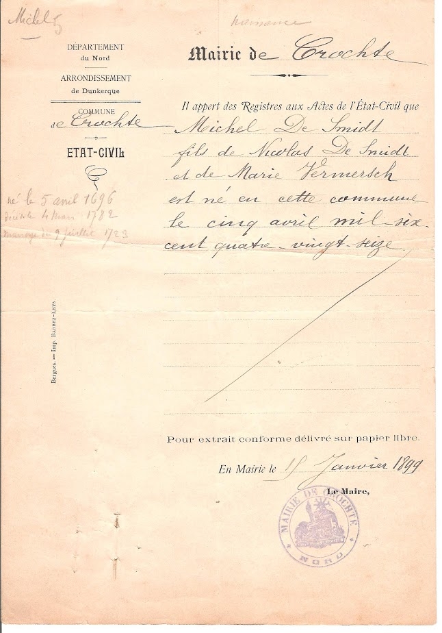 DéconnectéDire merci | REMONTÉE DE POSTE je suis aussi en train de "ranger mes ancêtres" et je le fais sur geneanet, j'arrive jusqu'à 1766... et puis après? Vous avez des conseils? Ce qui me fascine c'est de voir le rôle central de Paris pour les rencontres inter régionales ou internationales... jusqu'au XIXe tous les mariages etc. se font quasi dans les mêmes régions ou villages et puis au début XX on voit un glissement vers la capitale et là.. les Vosges rencontrent l'Aveyron, le Breton rencontre la Marseillaise etc. et puis les catégories sociales se rapprochent. Je m'amuse aussi à retrouver avec Google map les différents villages. Et les prénoms me laissent rêveuse: Antoine-Sulpice qui épouse Philiberte... Je trouve aussi plusieurs Desle. D'où vient ce prénom? |