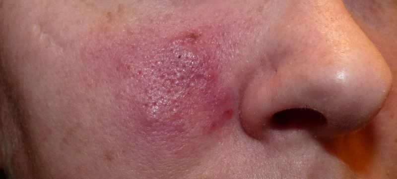 | Dire merci | Ce genre de rougeur est vraiment pas facil à masquer. Peut etre avec un fond de teint compact alors ! C'est plus épais et plus couvrant. Et tj le correcteur vert, indispensable. |