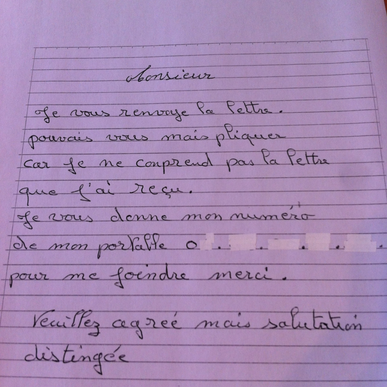 | Dire merci | La lettre Je suis choquee !! C'est grave ![]() |
