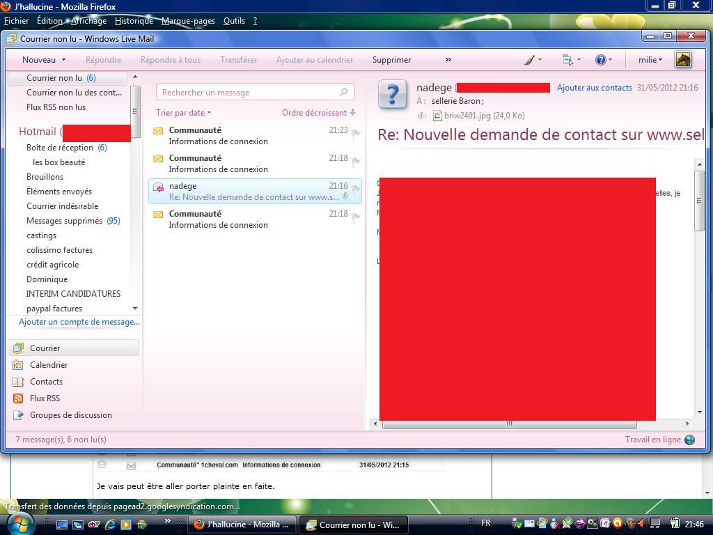 Déconnecté | Le truc c'est que j'ai l'impression que ça va plus loin...quelqu'un essaie de me pirater mon msn, là où je reçois les fameux mails Et bizarrement, ce soir....là où je viens de recevoir mes 8 mails de la Communauté Etrange non? |
