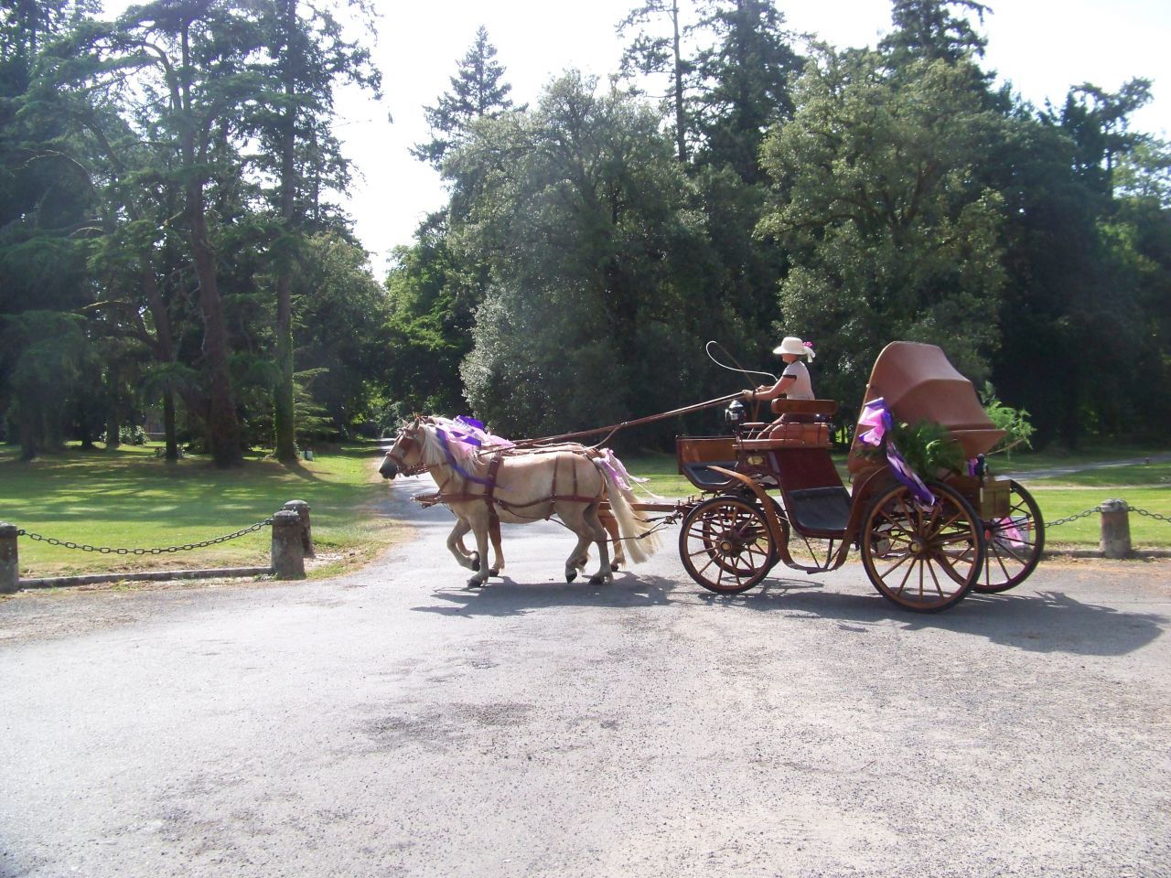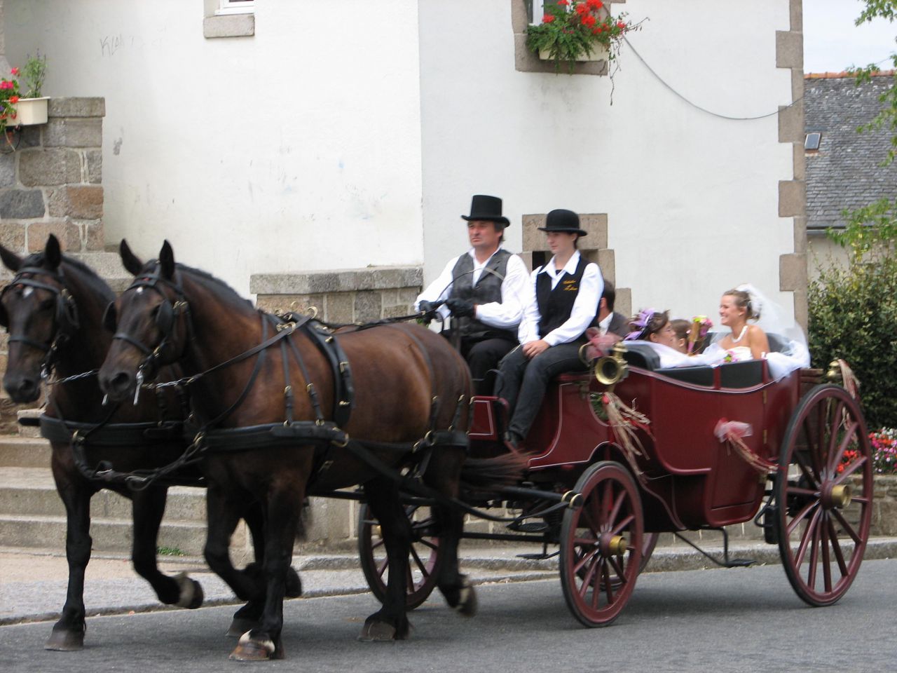 | Dire merci | Dans ce cas, je te conseille de prendre quelqu'un pour le monter et qu'il te suive plutôt C'est ce qu'avait fait venven-bichette, du forum. C'est comme ça que lilou et moi avons monté ses chevaux derrière la carriole des mariés. Avec son propre cheval, c'est le plus simple je pense. la veille au soir, n avait fait des expériences, mais c'était juste pas possible de monter en robe de mariée à l'arrache. Ou alors avec une selle amazone, mais faut se préparer un peu avant... et trouver la selle qui va! Pas évident. Et pour les attelages, pour faire ça aussi, ben c'est sûr que c'est cher, mais c'est normal aussi. Nous on vient avec deux chevaux, une calèche, groom, meneur. Les chevaux sont impeccables, shampouinés, nattés, harnais astiqué, calèches fleurie, etc... Ca demande pas mal de préparation. Le meneur est diplômé, déclaré assuré, et le groom (moi ) faut bien le payer aussi.Je comprends que ça rebute pas mal de gens, mais à côté de ça, l'attelage, c'est potentiellement dangereux (et dans une ambiance mariage en plus, y'a pas intérêt que ça parte en vrille), donc mieux vaut éviter de faire appel à des branquignoles qui vont faire ça à l'arrache. C'était la minute "erzie prêche pour sa paroisse" |