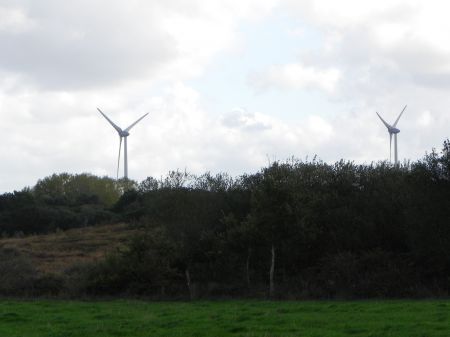 | Dire merci | euuu pas si loin que ça des habitations quand meme, c'est une belle illusion d'optique et certains villages d'à coté les ont juste au dessus. elles font 100m de haut sans les palles. |