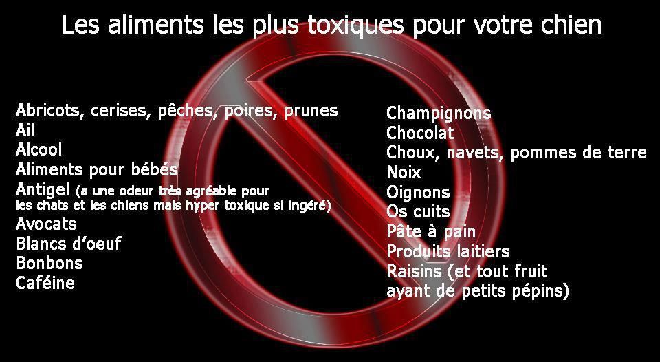 | Dire merci | elle est un peu fourre-tout cette liste, "toxique", c un peu exagéré parfois. Pour les os cuits, ce n'est pas "toxique" mais, contrairement aux os crues, ils peuvent se briser et faire des esquilles qui iront se ficher dans le tube digestifs... ![]() Pour les pommes de terre et le blanc d'oeuf, c'est crue que c vraiment pas bon, de mémoire. |