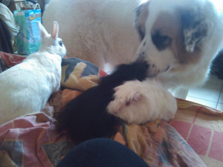 J'ai eu un lapin nain qui jouait avec ... la setter (qui chassait en plus) de mon père !
