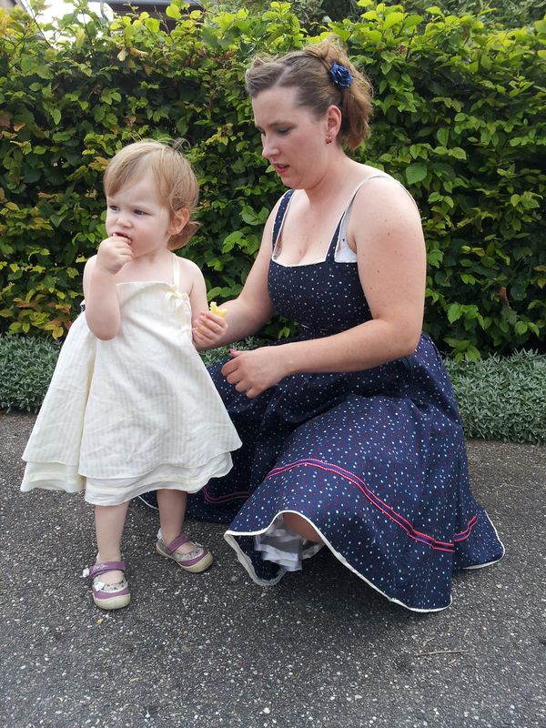 | Dire merci | je devais lui faire un truc ivoire/creme pour la cérémonie a l'église ... du coup je lui refais une robe a froufrou pour le reste de la journée/lendemain, elle sera des mêmes couleurs que l'autre robe (il me rester du tissu) |