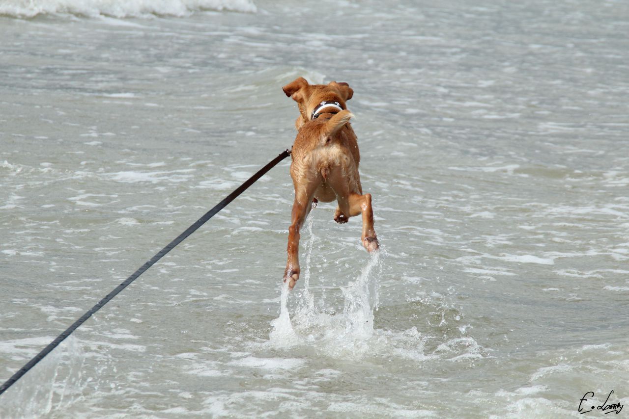 | Dire merci | Ca depend, elle y va que quand un autre chien y va sinon elle trempe les pattes juste Elle a pas été très loin quand même mais elle a un peu nagé ! |