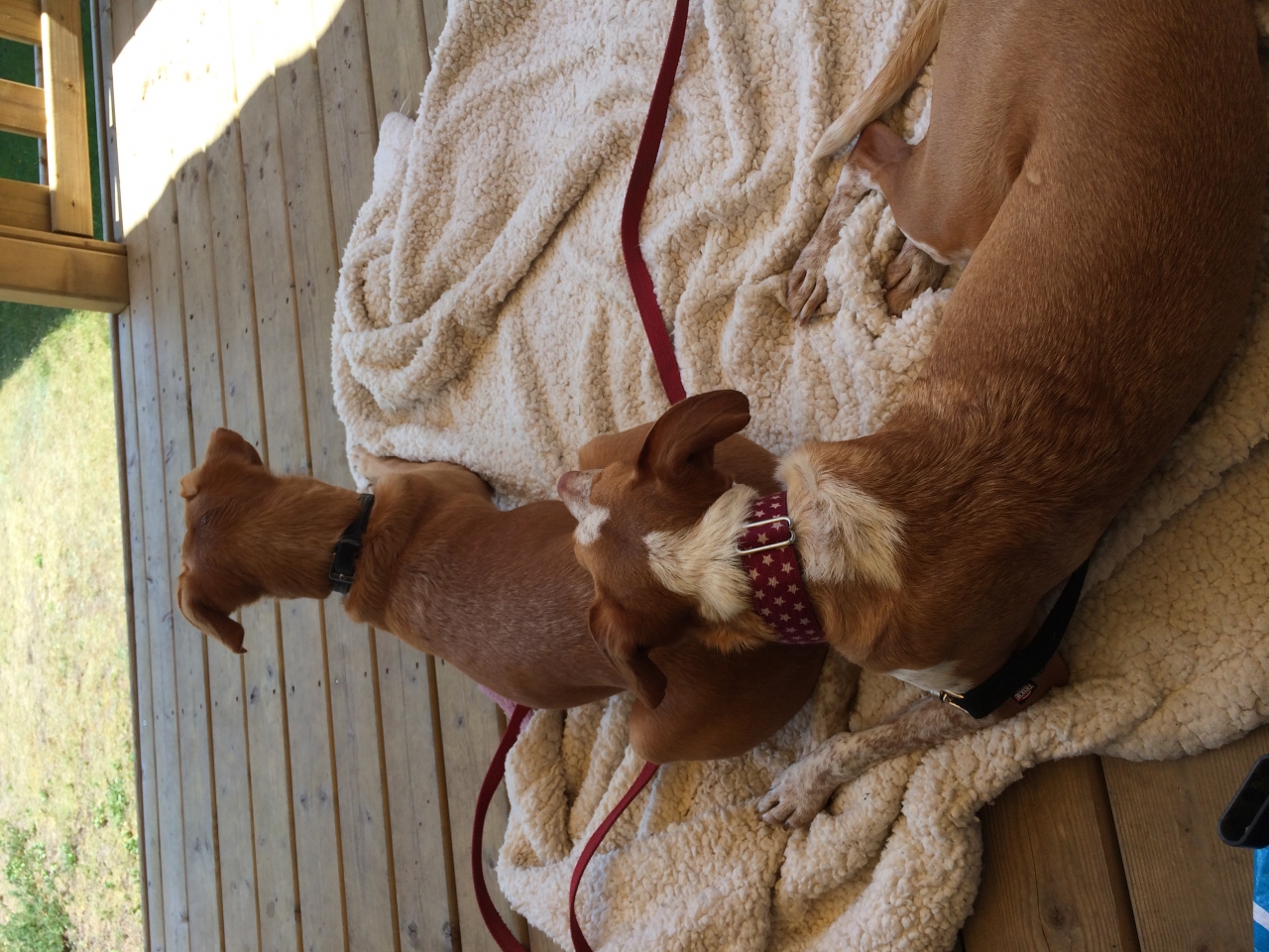 | Dire merci | Hello tout le monde !!! Petite nouvelle sur ce post car j'ai franchi le pas de l'adoption ... Une deuxiéme fois !!!! J'ai craqué sur une petite podenca avec le même regard que ma Kyra ... Elle était en famille d'accueil depuis quelques mois à 1h30 de chez moi, j'ai donc pu aller la voir avant et faire un test avec Kyra pour l'entente. Bien évidemment, je n'ai pas pu repartir sans tellement elle était mignonne Je vous présente donc Gala (ex-GADA), podenca de 3 ans. Elle a été trouvé en Espagne dans un conteneur avec ses chiots et tout ce petit monde a été placé en refuge. Gala est assez craintive et peureuse mais s'améliore de jour en jour. Très rapide et "fugueuse" (elle a plus l'envie d'aller se balader que de fuguer maintenant mais...) Gala reste en laisse ou grande longe pour les balades et s'épanouit. Du travail à faire mais elle s'est vite adapter et commence à vraiment être à l'aise Avec Kyra, ce sont de très bonnes copines, inséparables ! Quand à mon tout premier bébé Kyra, elle va très bien, les soucis de destruction sont résolus depuis un bout de temps, c'est l'amour de ma vie Voici princesse Gala que nous avons donc adopté en janvier 2017 ![]() ![]() Ma Kyra ![]() Séance de jeu entre rouquines ![]() Gala ![]() |