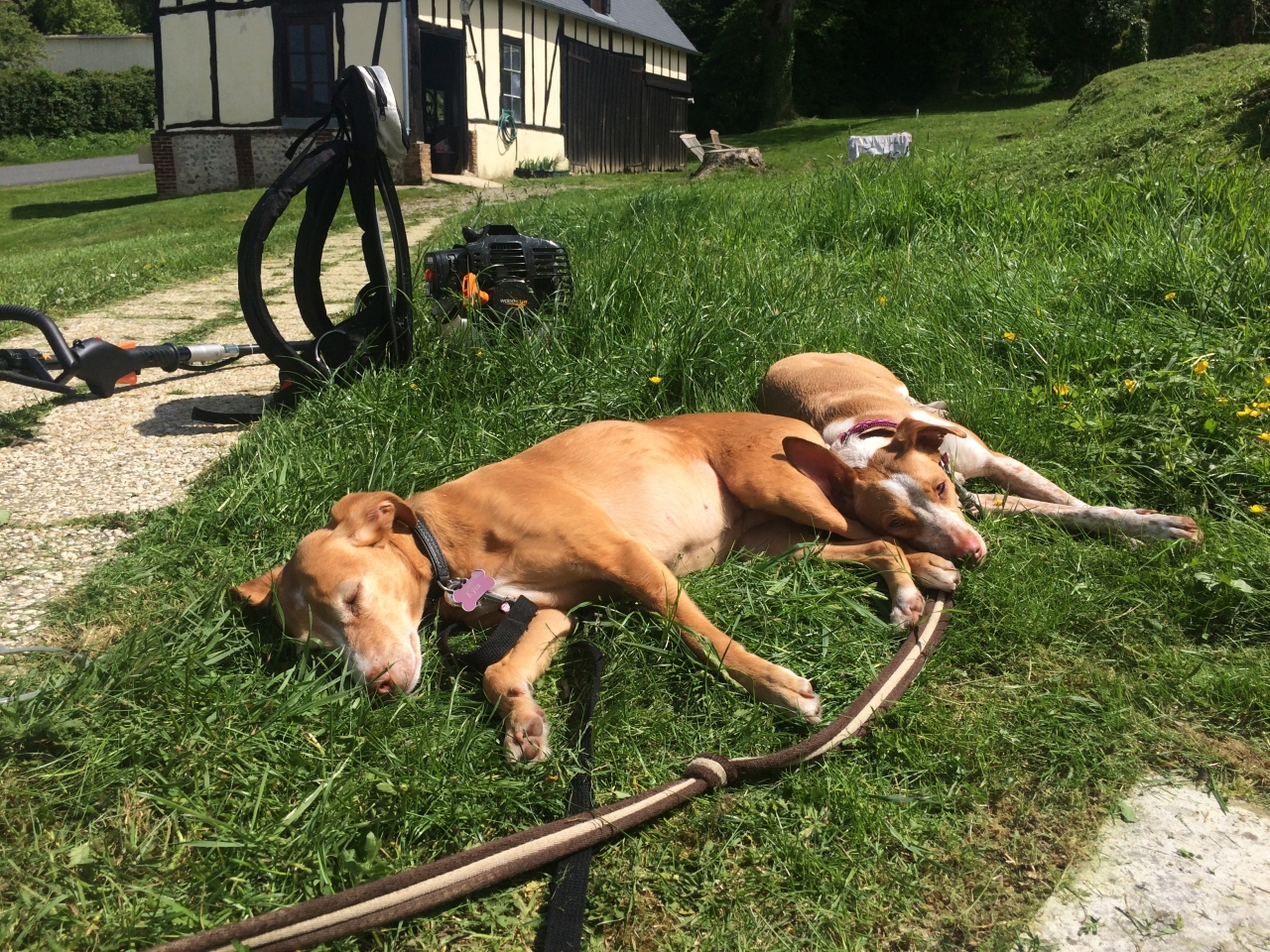 | Dire merci | Ils sont choux Je te rassure j'ai aussi du mal à deux... Passer de deux bergers qui obéissaient aux claquements de doigt, à deux lévriers qui font leurs vies, c'est pas facile... On ne lâche pas non plus Girasol, il irait faire sa chasse dans son coin et Lennon mon whippet, le suivrait sans doute... Alors bon |