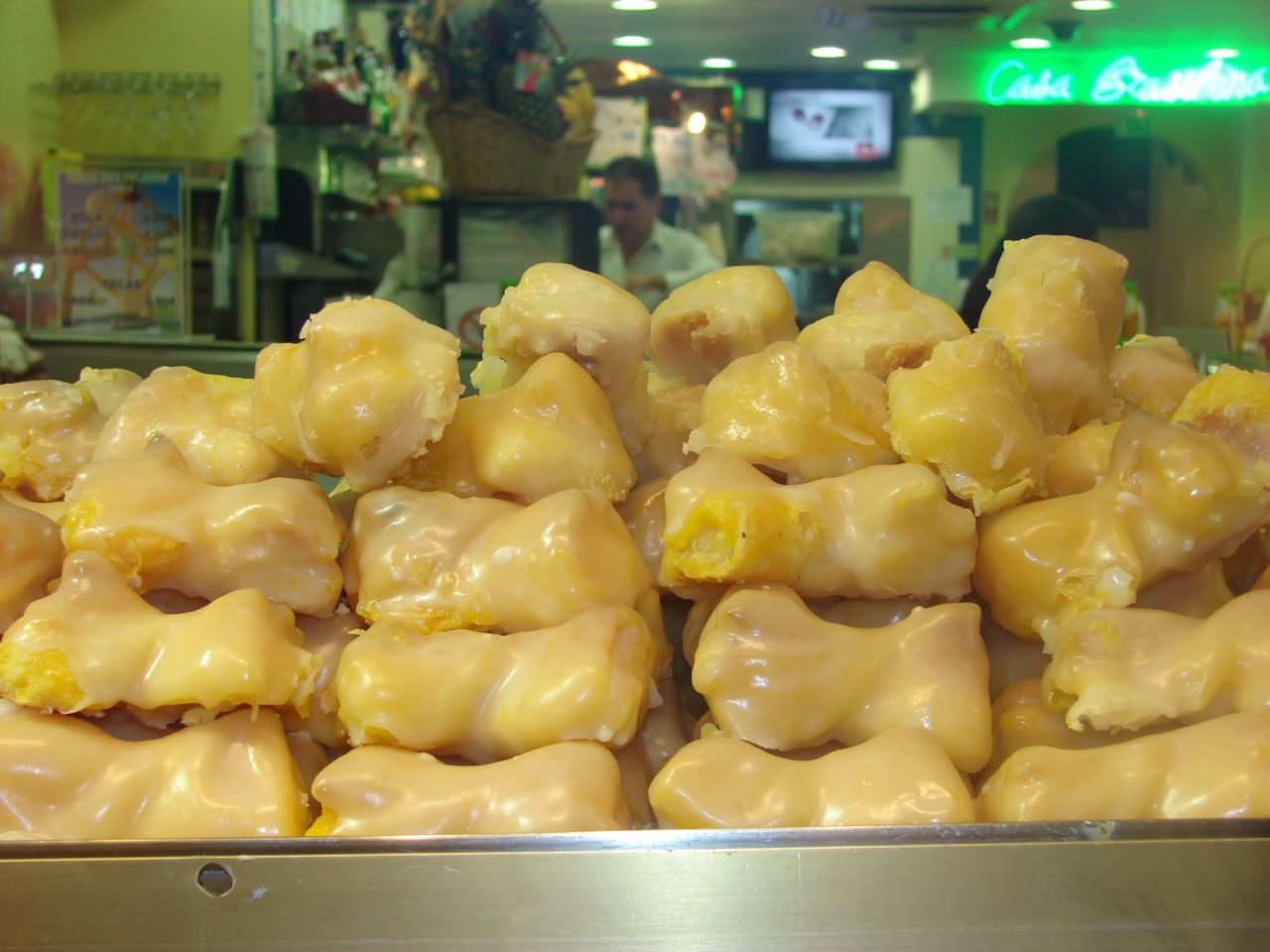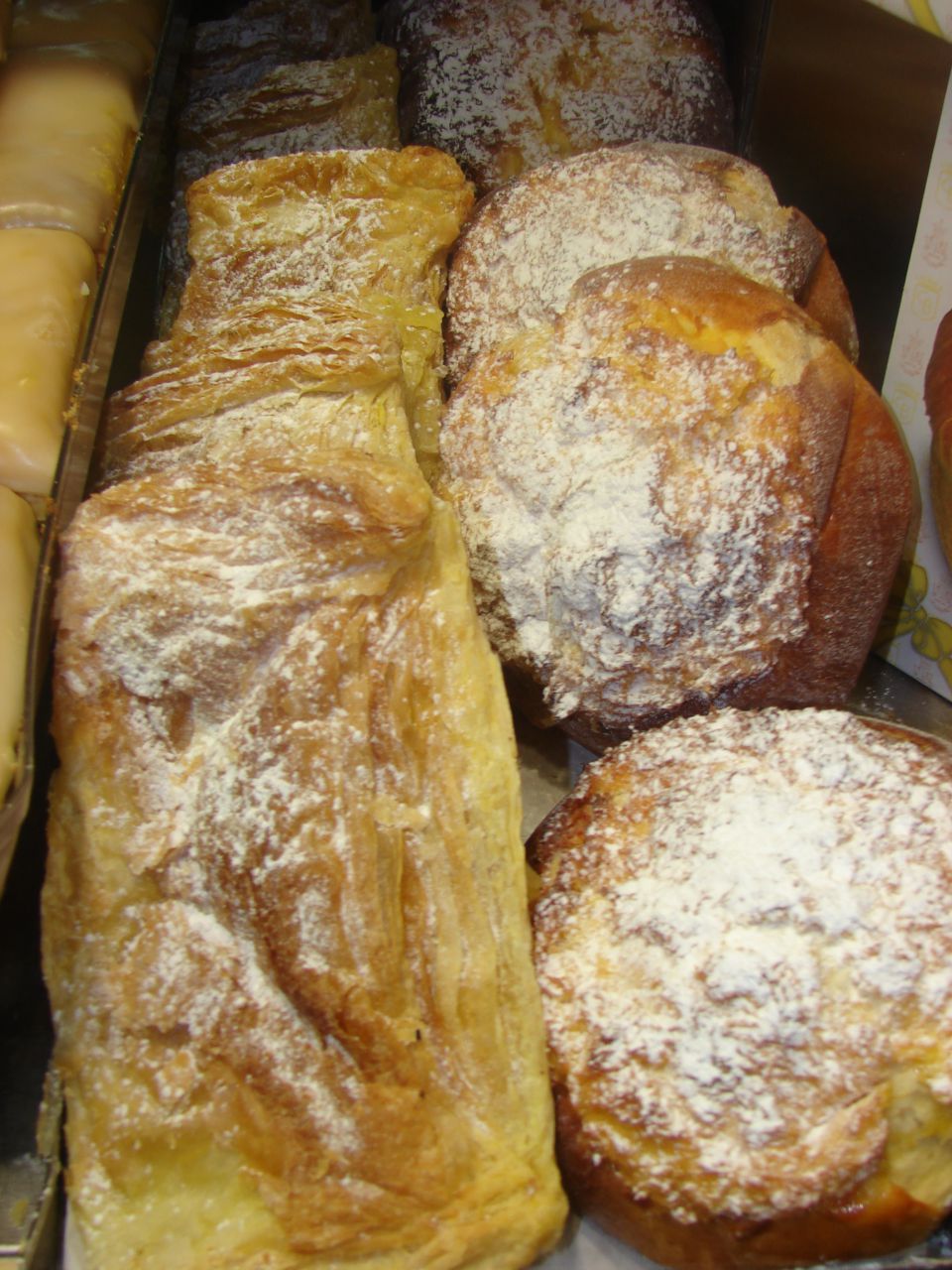 | Dire merci | Et alors on a pas gouté les pasteis, mais y'en avait de partout, par contre on nous a amené dans l'antre de la patisserie portugaise: c'est incroyable tu manges de l'oeuf et du sucre au debut tu te dis impossible ca doit etre trop écœurant, mais en fait, même pas Miam!les fameux pasteis: ![]() les jaunes d'oeufs au sucre: ![]() et les roulés fourrés... au jaune d'oeufs évidemment |