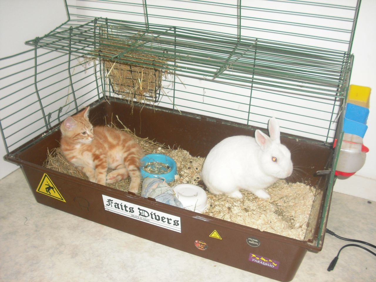 | Dire merci | Je vais le zigouiller... Elle m'avait prévenu, c'est une tornade. Bein non, c'est un cyclone!!! Toute fière d'être en avance sur mon programme JO, je pose mon fessier royal, satisfaite d'avoir passé l'aspirateur, fait ma vaisselle, m'être occupée de tout nettoyer les cages, les litières, les gamelles et tout et tout. Et là, gratgratgratgrat. non!!!!!Ce petit con s'est jeté dans la litière et a TOUT foutu à côté. Une fois sa tâche accomplie, il s'est jeté dans la cage de Lapin et a balancé le foin partout... Du coup, là ça va commencer, et je dois ramasser la litière et le foin. Je le déteste!!!! |