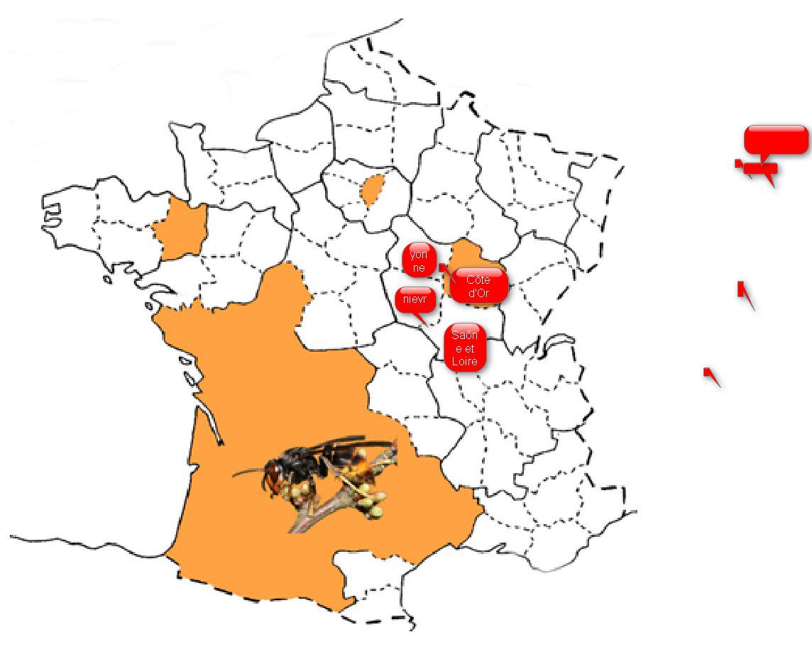 | Dire merci | Moi je suis en Loire Atlantique qui n'est pas en orange sur la carte, et pourtant on a bien eu des frelons asiatiques... |