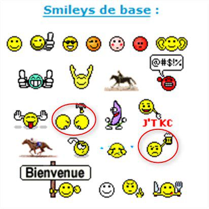 | Dire merci | Vous connaissez quand même les raccourcis, non ? Le smiley qui sourit, quand on tapa au clavier, se fait en tapant à la suite les caractères suivants : : - ) Par extension, et pour aller plus vite, on se contente souvent de taper 2 signes : ) (j'ai mis des espaces pour visualiser les signes utilisés) Essayez à votre tour de taper ces 2 signes, et regardez ce que ça vous donne : le smiley qui sourit ! (et pas le smiley baveux...) : D nous donne celui là (beaucoup utilisé sur le forum): d donne le sctroumph (pourquoi, je n'en sais rien... Avec le D, normalement, c'est le smiley qui se marre, et avec le d, c'est supposé être le sourire en coin...mais ici, c'est le sctroumph) : p donne celui qui tire la langue : ( donne le smiley triste et celui qui pleure ? normalement ce sont les signes : ' ( mais ici, je ne sais pas le faire :'( ne fait rien et le clin d'oeil, tout le monde connait, non ? ; ) |