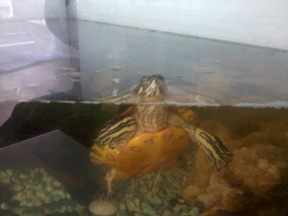 | Dire merci | aie tu viens d'adopter une espéces nuisible c'est la fameuse tortue de floride a oreille rouge c'est carnivore agressif et ça porte le virus de l'herpes souvent sinon je croyais que leur commerce avait été interdit en france ![]() |