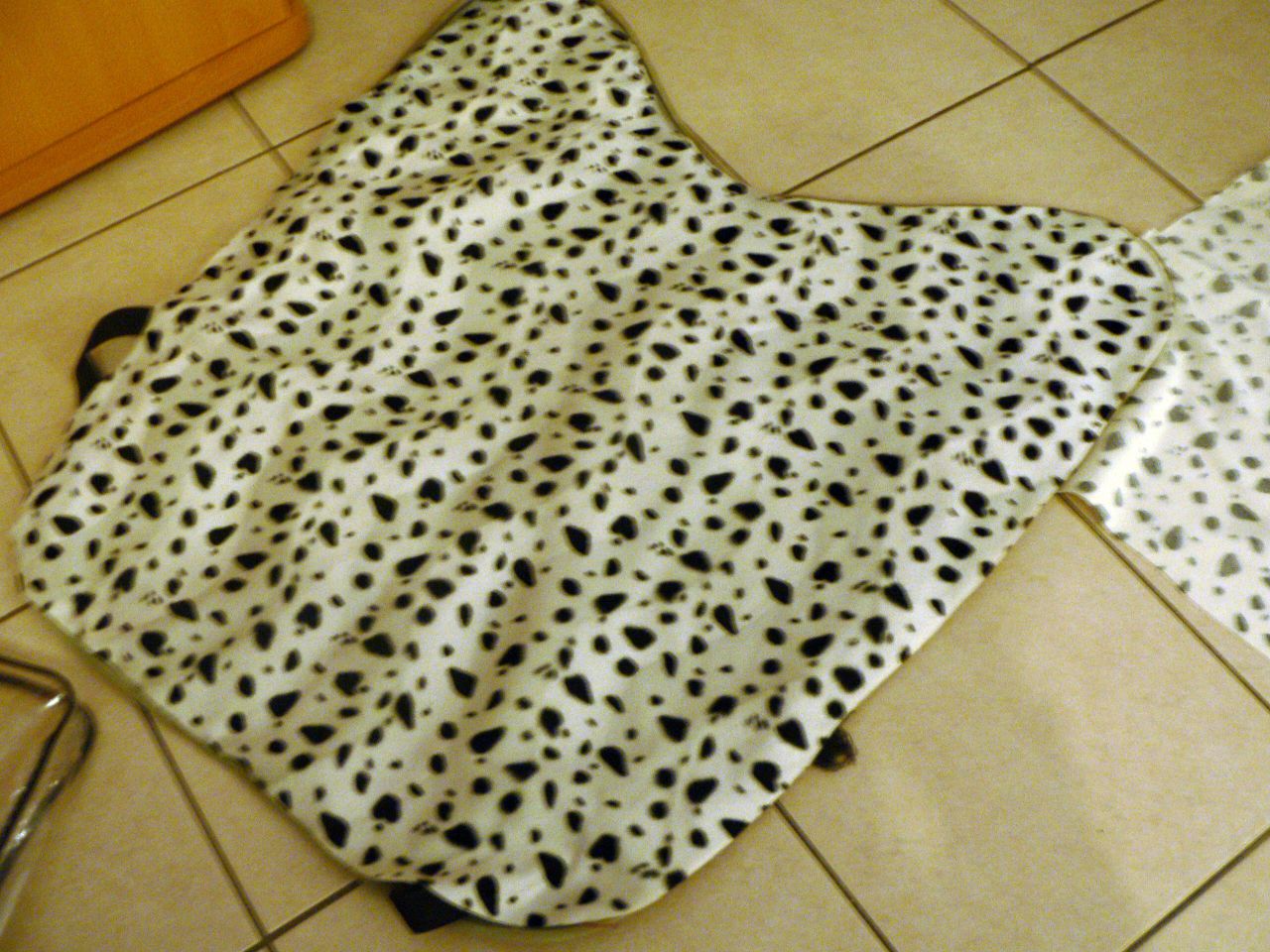 DéconnectéDire merci | Ah ok, justement je demandais un patron pour la capuche je sais pas trop comment assembler àa au reste, mais je peux me pencher sur la question d'ici Noel Sinon si tu veux faire comme la couverture Dalmachien, hyper simple ! J'ai découpé la forme sur une vieille couverture : ![]() Un scratch sur le poitrail, un élastique autour de chaque patte arrière, et zou ![]() (sur la couv d'origine y'a aussi une sangle sous le ventre, mais jme suis pas embêtée...) Message édité le 08/11/12 à 13:58 |