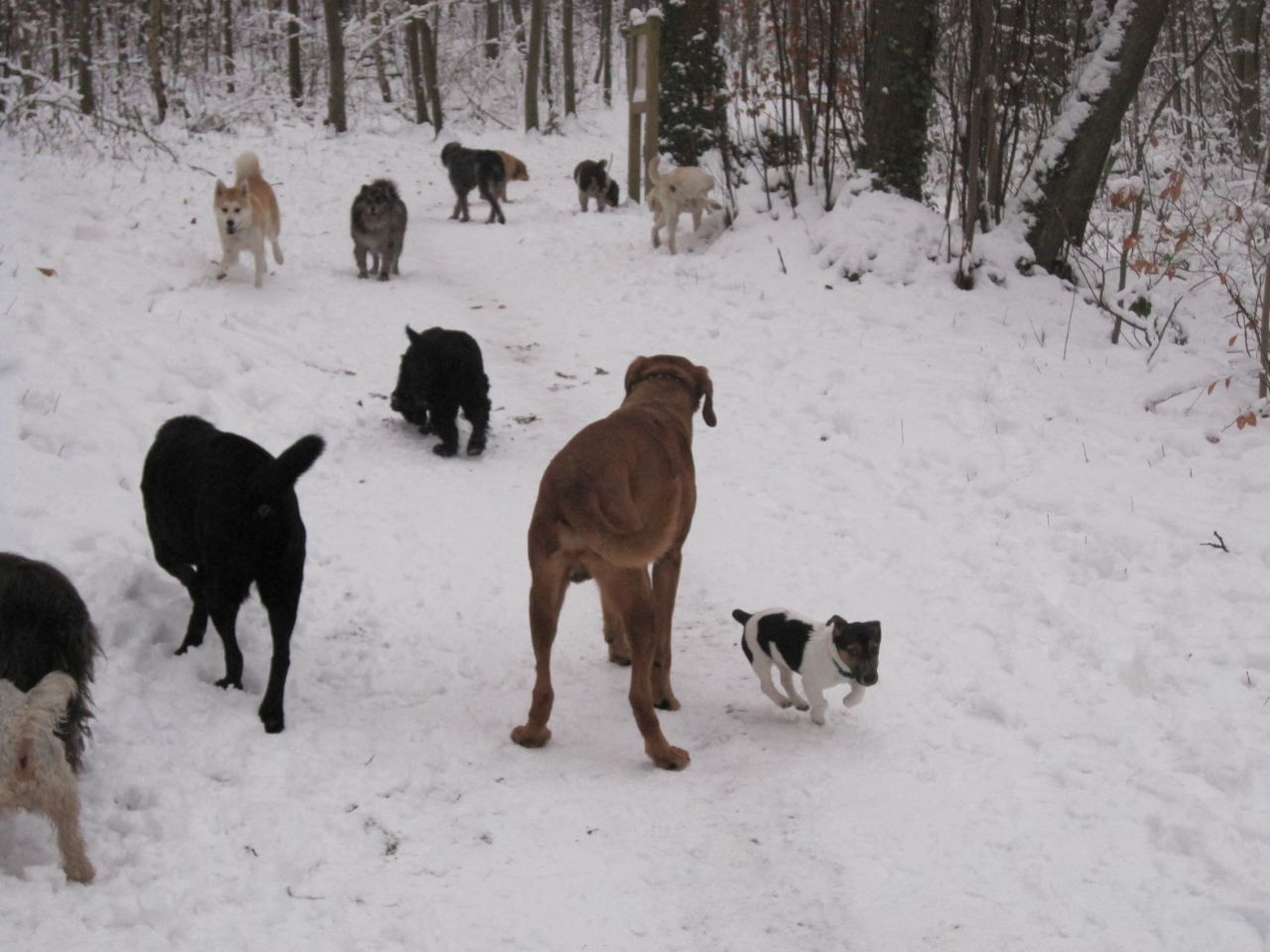 | Dire merci | oué bon forcément si t'es en entraînement endurance c''est pas pareil, mais un coup comme ça en balade pépère ça me dérange pas. Sinon, Pascale, j'ai pensé à toi, dans ma forêt il y a 2 mecs qui ont des akitas, bon visiblement les chiens doivent pas être super sympa mais par contre les mecs sont carrément au taquet, en gros s'ils me voient arriver avec mon chien et mon poney a 1km, il quitte direct la route principale, attache leur chien, muselle et attendent que je passe. par contre je connais une Akita bien sociable ![]() on la voit au milieu de la meute |