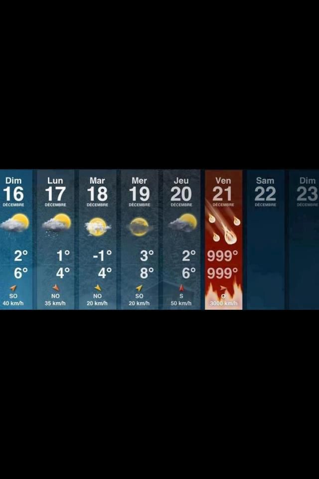 | Dire merci | en plus je viens de voir que sur M6, ils passent le film "2012" mardi soir, histoire de faire stresser un peu plus ceux qui y croient |