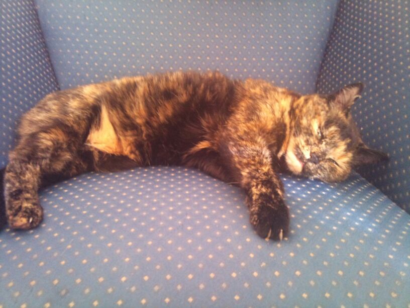 | Dire merci | Des nouvelles de Nanou la chatte de mes voisins... Ils ont pris rendez-vous en clinique pour envisager, peut être, une chimiothérapie. Mais aux dires du spécialiste c'est possible uniquement avec un chat calme et coopératif tant le traitement est lourd à supporter ainsi que les effets d'après chimio. Autant dire que ce n'est pas du tout le cas de Nanou (l'est pas écaille de tortue pour rien ! )Donc ses proprios ont décidé d'abandonner l'idée et de ne pas lui faire subir ça. Pour l'instant elle se porte bien et a bien repris du poids, pourvu qu'elle se maintienne. Et ta Feufeuse alors ? |