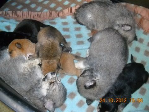 | Dire merci | Ah ! Un post qui colle pile au moment pour moi ![]() J'ai réservé une petite staffie, elle a tout juste 1 mois, donc vraiment chiot Quelques photos prises par l'éleveur, voici Ipi Tombi !![]() ![]() Et avec ses frères et soeurs ![]() Arrivée prévue en février ! Ca va dépoter... C'est la première a avoir ouvert les yeux, s'être mise assis, debout, elle ne tient pas en place (sur la photo de groupe impossible de la garder assise, pour ça qu'elle est en première ligne ), et elle grogne dès les autres qui l'embêtent ![]() Message édité le 05/01/13 à 18:27 |