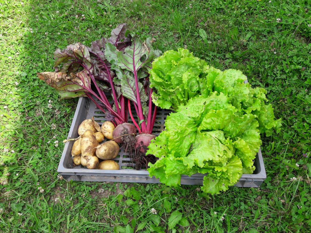 | Dire merci | Les maïs et tournesols![]() Dans la série monstroplantes les salades et betteraves ![]() La raison de ma déception sur les choux ![]() Le résultat de leur travail acharné ![]() Et enfin ma petite récolte du jour ![]() ![]() |