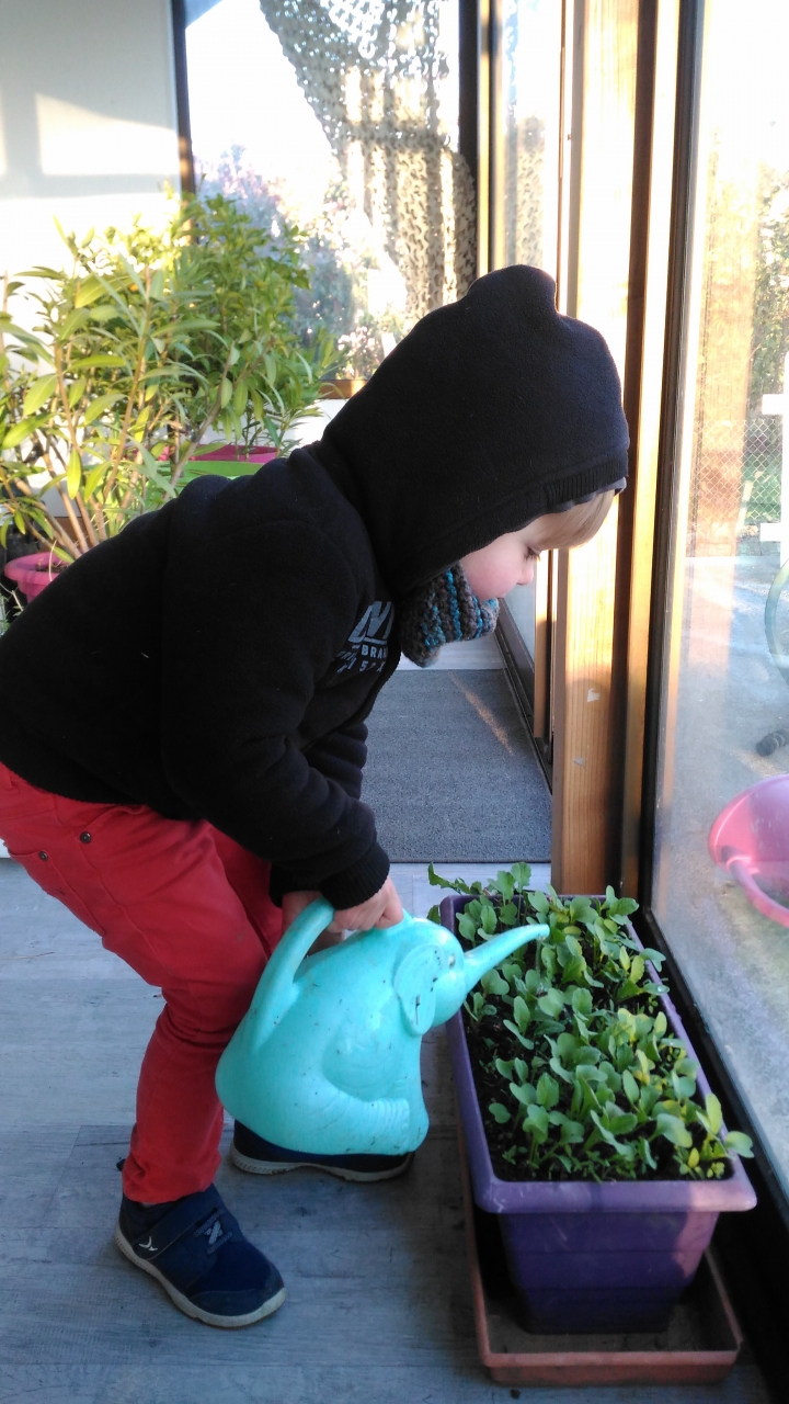 | Dire merci | Les radis en bac dans la veranda poussent bien.. Petit jardinier s'en occupe bien aussi ![]() |