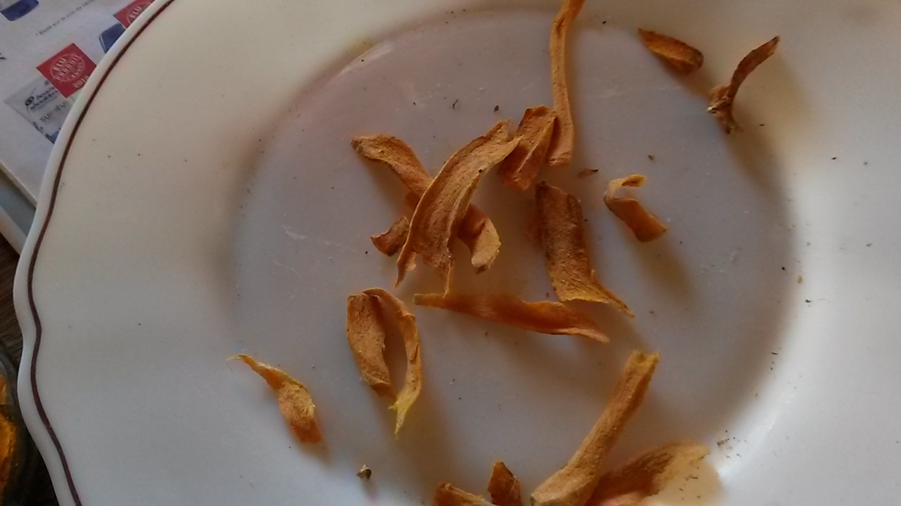 | Dire merci | et voilà mon curcuma ![]() j'avais gardé quelques rhizômes pour pouvoir les faire sécher et les moudre je vous garanti que l'odeur est juste exquise ! rien à voir avec le curcuma acheté moulu du supermarché ou je ne sais où; d'ailleurs quand je vais au maroc je demande toujours à l'épicier de le moudre devant moi pour qu'il soit bien frais et garde toutes ses vertus et surtout son goût ![]() ![]() ![]() |