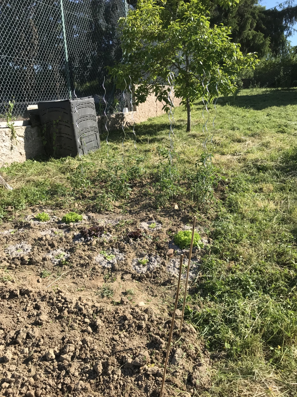 | Dire merci | Comme toujours je suis admirative de vos beaux potagers ! Le mien ne donne pas grand chose cette année, mais bon c'est une première, je n'ai rien travaillé ni préparé avant alors ce n'est sans doute pas surprenant ! Je n'ai planté pour le moment que * des tomates. Pour le moment elles sont en fleurs. J'espère qu'elles vont donner quelques chose, en tout cas elles ont l'air de se plaire puisqu'elles ont bien grandi (mais doucement) et que les pieds ont l'air plutôt sain, * des salades... Et là c'est un peu aléatoire... Elles grossissent mais j'ai des vers bancs qui les attaquent par la racine et ça m'en a déjà détruit plusieurs. Je ne souhaite pas traiter chimiquement, j'ai commencé à regarder un peu ce que ça pouvait être et il y a mille idées à tester mais rien qui ne semblent vraiment éprouvé à part l'introduction d'autres vers prédateurs de ceux-ci. L'idée m'enchante moyen... * des haricots que j'ai tout juste semé. Ma terre est vraiment pas simple à travailler... Humide au fond mais hyper sèche sur le dessus. Elle parait pauvre (c'est pas de la belle terre noire comme celle qu'on achète). J'agrandis à la main peu à peu ma surface de culture mais c'est très compliqué à ouvrir et ça demande vraiment de la force (et du coup du temps vu que je manque un peu de force!) ![]() Ma toute première salade du jardin que j'ai mangé ce week-end. C'est le quotidien de beaucoup surtout ici, mais c'est une fierté pour moi ![]() Les semis de tomates que j'ai pourtant fait il y a longtemps sont restés minuscules. Je vais tenter de les planter quand même et je verrai bien car là je ne suis pas sure que ça survive encore en pot mais franchement je pensais que ça pousserai plus vite. Je ne sais pas où je me suis planté sur les semis. C'est une année d'apprentissage on va dire. |