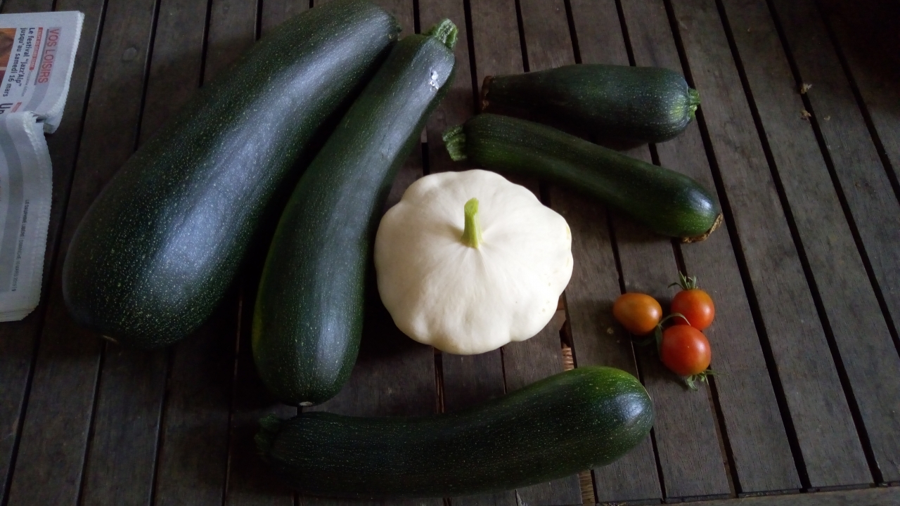 | Dire merci | Je préfère aussi les courgettes de petite taille. Mais là, j'en ai eu 3 coup sur coup qui sont devenues trop grosses, je ne vais voir mon jardin que 2 fois par semaine, ça se débrouille tout seul, sans arrosage pour les tomates, et juste un peu pour les cucurbitacées quand je vais là bas. Du coup, les grosses courgettes ont fini en velouté. J'ai eu 2 beaux pâtissons aussi (pareil, je n'attend pas qu'ils soient énormes je les préfère quand ils ont la taille de ma main doigts écartés) Mon jardin donne peu, car j'ai planté très tard (juillet), et les sauterelles m'ont tout ravagé. Sur 13 pieds de tomates, seuls 6 ont survécu (des variétés de petite taille, type cocktail) Sinon, en pots sur la terrasse, j'ai de la salade feuille de chêne, on en mange tous les jours, je ne coupe pas les salades entières, je coupe au fur et à mesure les feuilles dont on a besoin. C'est une super formule. J'ai aussi des blettes, on en a déjà mangé 2 fois, soit les côtes, soit les feuilles cuisinées comme des épinards. |