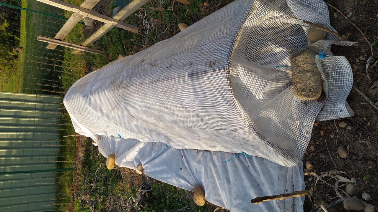 | Dire merci | Les petites carottes ![]() Le tunnel bricolé : j'avais récupéré la structure métallique l'année dernière, et hier j'ai attaché dessus du plastique de serre (reste de la serre de ma mère, qui s'est écroulée sous la neige de cet hiver) ![]() Et le 2ème rang de patates (le voile ne faisait pas toute la longueur donc j'ai mis un bout de tunnel pour finir au passage je trouve ça top ces petits tunnel, facile à positionner et à déplacer au besoin.. je m'en sers bcp)![]() |