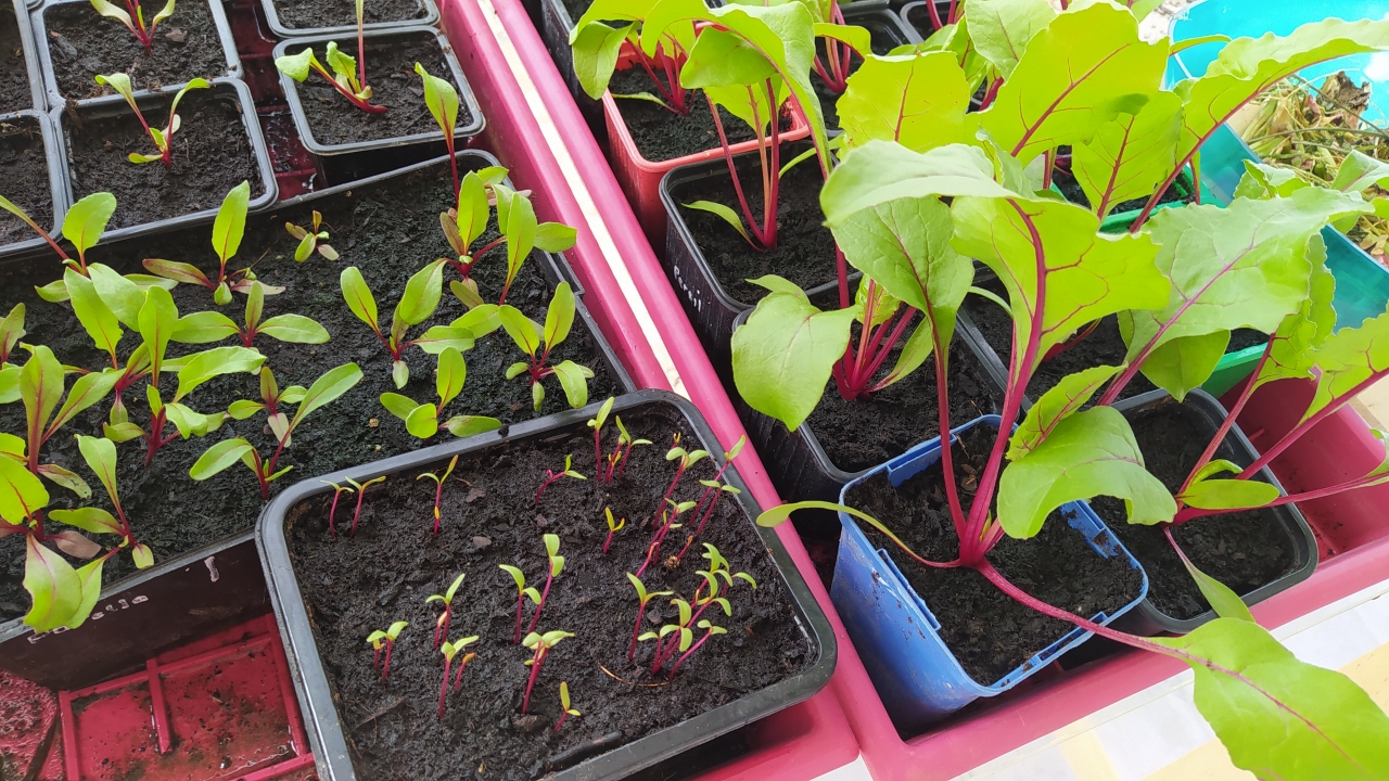 Mes semis de betteraves (c'est pas tout pour moi, on est 3 dessus). Elles sont à des stades différents car j'ai pas tout semé en même temps ![]() ![]() Le carré d'aromatiques et fraises ![]() Une partie des courges, avec les maïs à pop corn intercalés au milieu (mon fils a eu la main lourde au semis, il a bien fallu les caser quelque part )![]() Et la 2ème récolte d'arroches... je profite d'avoir de la main d'oeuvre pas chère pour les trier (ne vous fiez pas à sa tête de martyr, il ne voulait plus s'arrêter )![]() |